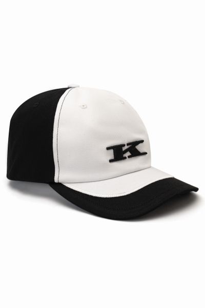 Бейсболку с контрастными панелями и изогнутым козырьком сшили из чистого хлопка. Аксессуар украшен вышитой литерой «К» и регулируется с помощью застежки с лентой велкро сзади.