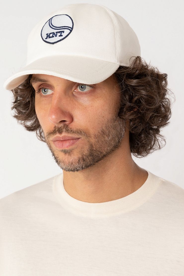 Бейсболку с изогнутым козырьком сшили из мягкого хлопкового трикотажа. Модель украшена логотипом в форме теннисного мяча и регулируется с помощью ремешка с лентой велкро сзади.