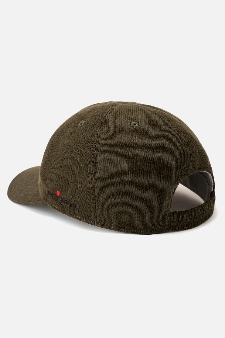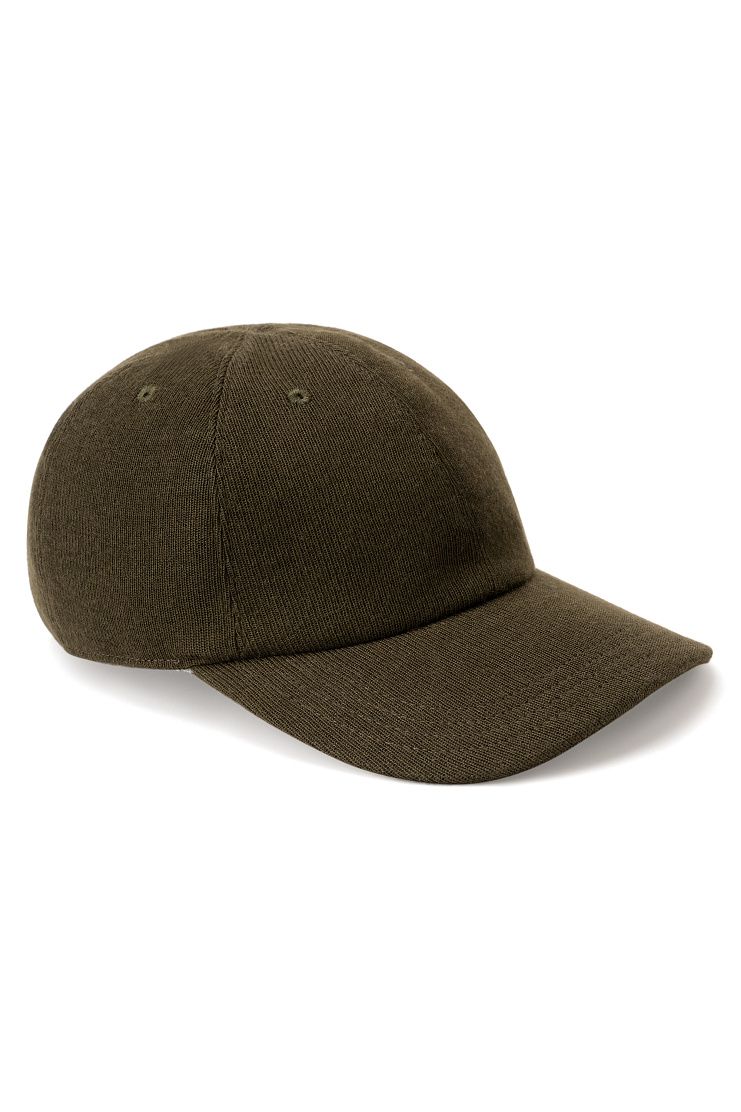 Бейсболка с изогнутым козырьком выполнена из трикотажа на основе кашемира с добавлением шелка. Аксессуар с эластичным ремешком для комфортной посадки и украсили вышитым фирменным логотипом.