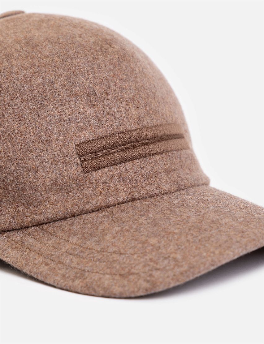 Шестипанельную бейсболку с изогнутым козырьком выполнили из мягкого и плотного кашемира. Аксессуар с эластичным ремешком украсили вышивкой спереди и металлическим логотипом сбоку. Благодаря нейтральному оттенку бейсболка гармонично впишется в любой образ.