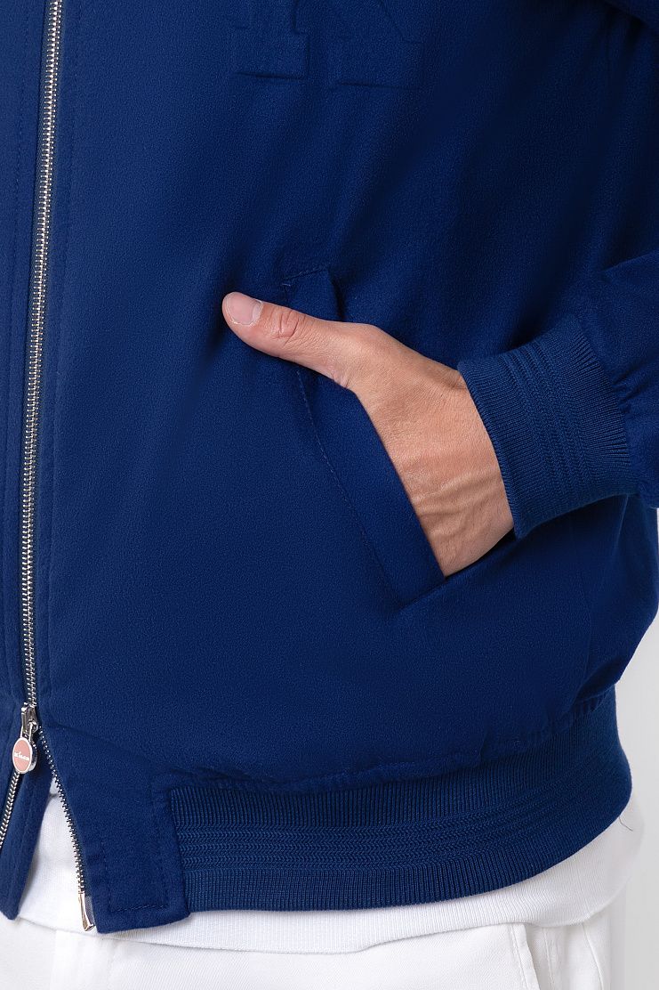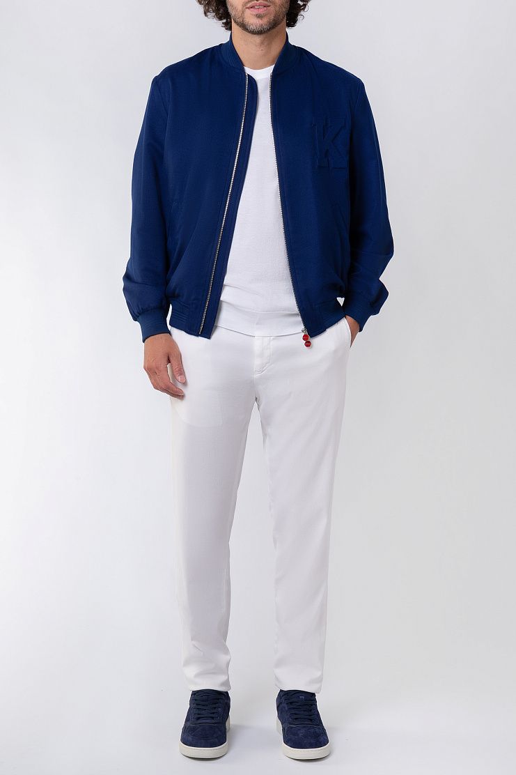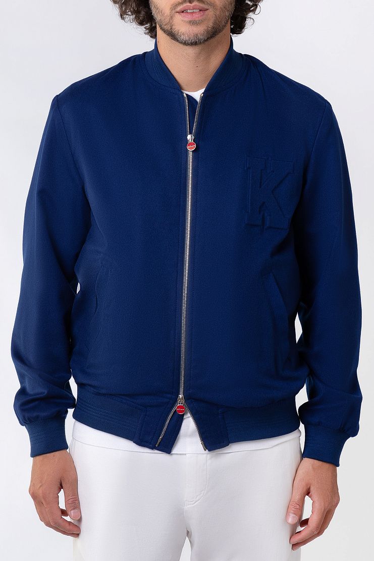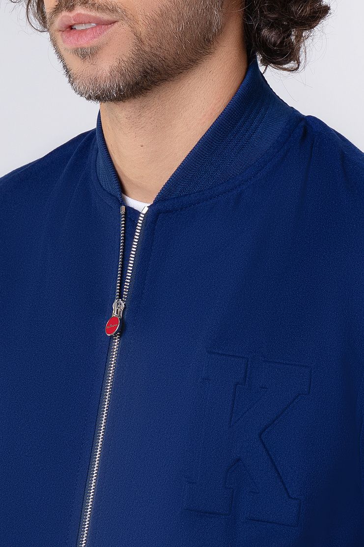 Бомбер из теплого кашемира будет незаменим в прохладные дни. Модель в спортивном стиле дополнена внутренним и боковыми карманами, а также эластичной отделкой на манжетах и поясе. В качестве декора выступает тисненая литера K спереди, нашивка с логотипом сзади и яркие пуллеры на встречной молнии.