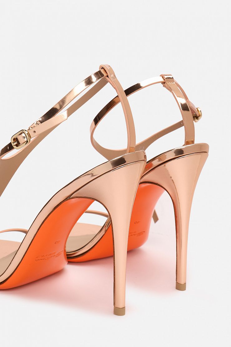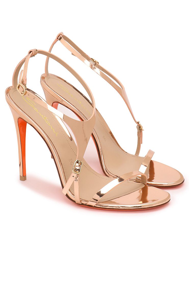 Босоножки с изящным ремешком и тонкой перемычкой. Модель на тонком высоком каблуке. Каждая пара обуви бренда Santoni оснащена чипом с технологией NFC, гарантирующей оригинальность продукта.