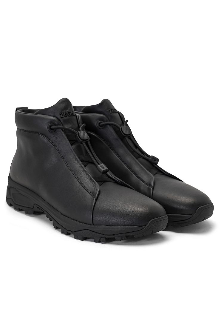 Ботинки в спортивном стиле выполнены из гладкой и прочной телячьей кожи. Дополнены эластичными шнурками, завязками со стопперами и петлями на заднике. Специально разработанная подошва Vibram® Arctic Grip All Terrain обеспечивает повышенное сцепление с поверхностью и защищает от скольжения. Такие ботинки прекрасно подходят для городских прогулок и активного отдыха.