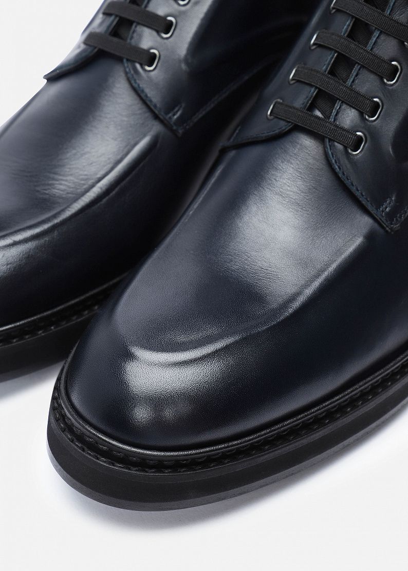 Кожаные ботинки на шнуровке из резинки идеально подойдут для городского стиля. Модель имеет кожаную подкладку и толстую подошву с небольшим каблуком.