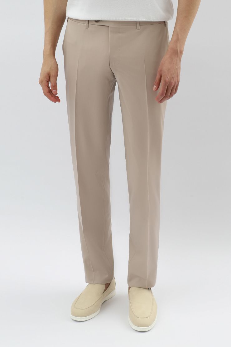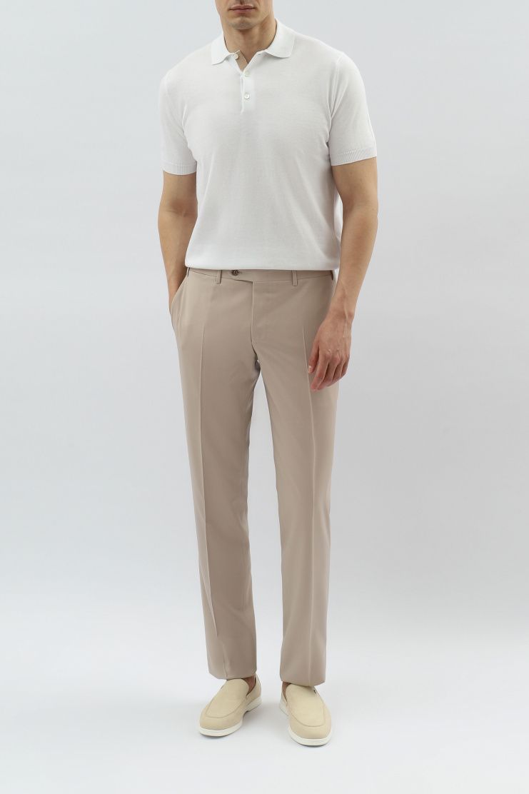 Брюки идеально подойдут для расслабленного элегантного образа. Модель прямого кроя со стрелками и застежкой на молнию и пуговицу.