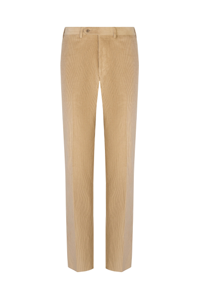 Зауженные брюки из мягкого хлопкового вельвета с характерным рубчиком — комфортное решение для образов на каждый день. Модель со стрелками дополнили шлевками для ремня, двумя парами карманов и застежкой на молнию и пуговицу.