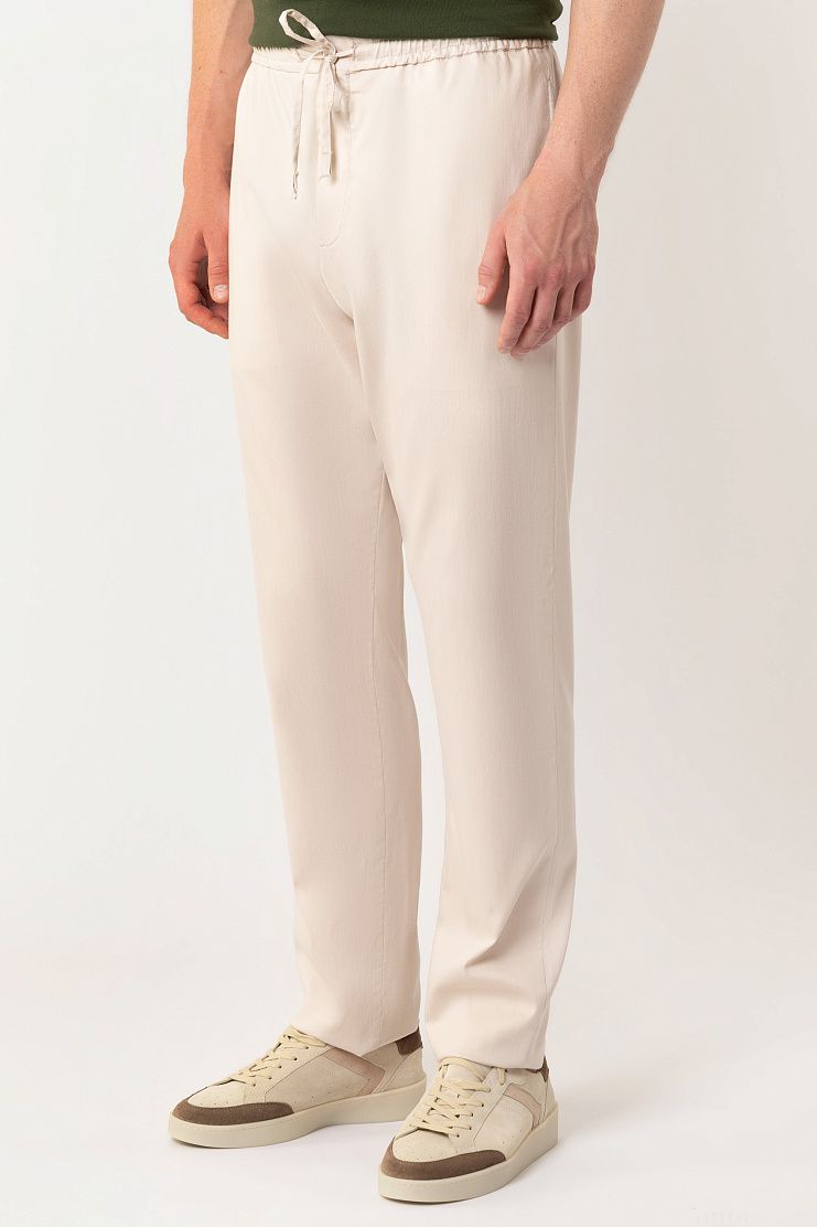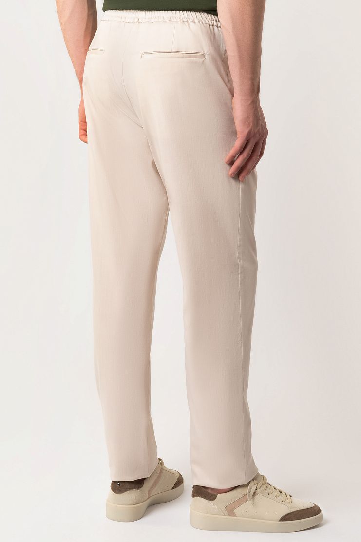 Свободные брюки сшили из мягкой смесовой ткани на основе лиоцелла, полиамида и хлопка. Модель дополнена эластичным поясом на кулиске, боковыми и задними карманами. Такая пара составит гармоничный комплект с рубашкой поло и кедами.