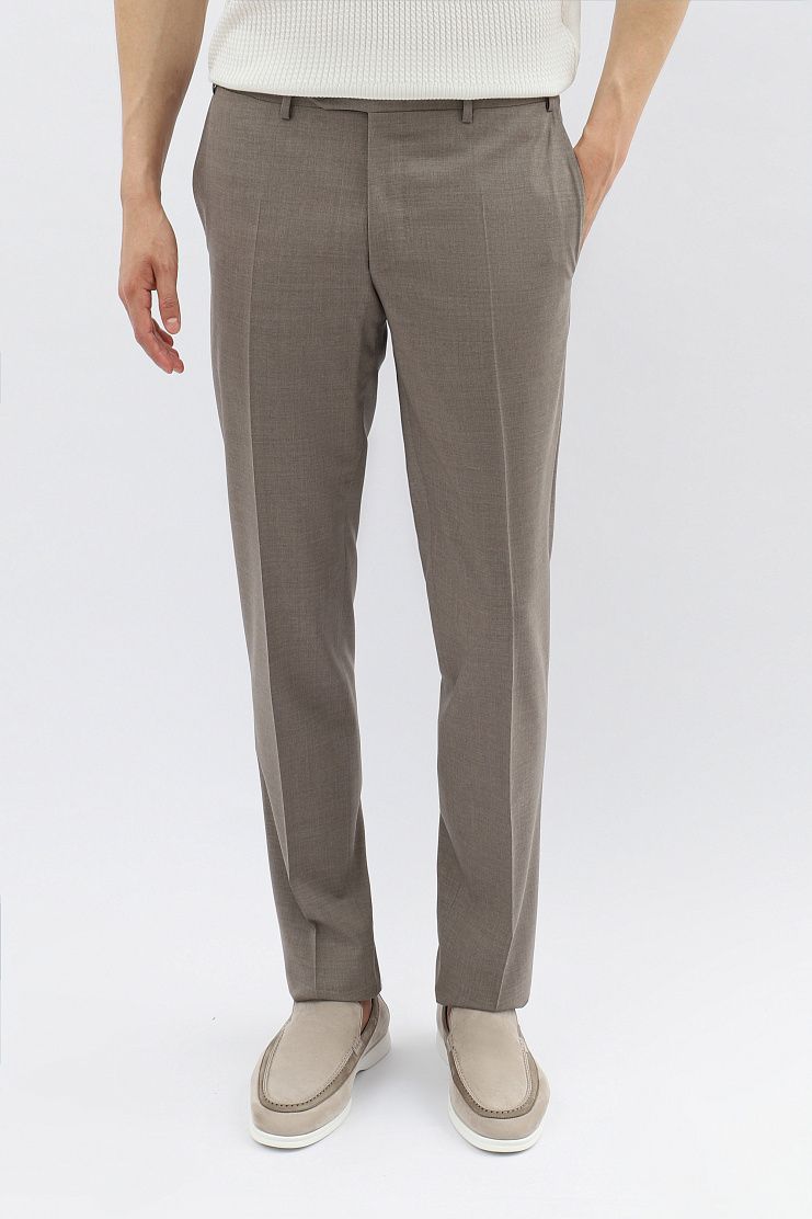 Брюки прекрасно подойдут для повседневного элегантного образа. Модель прямого кроя со стрелками и застежкой на молнию и пуговицу.