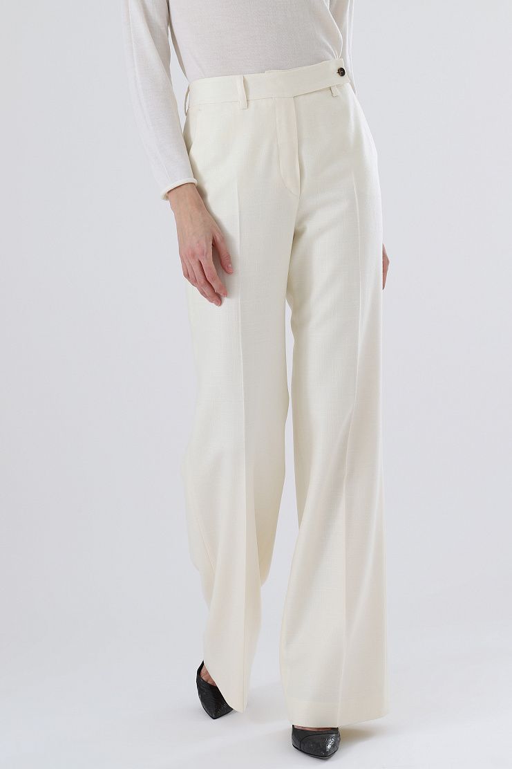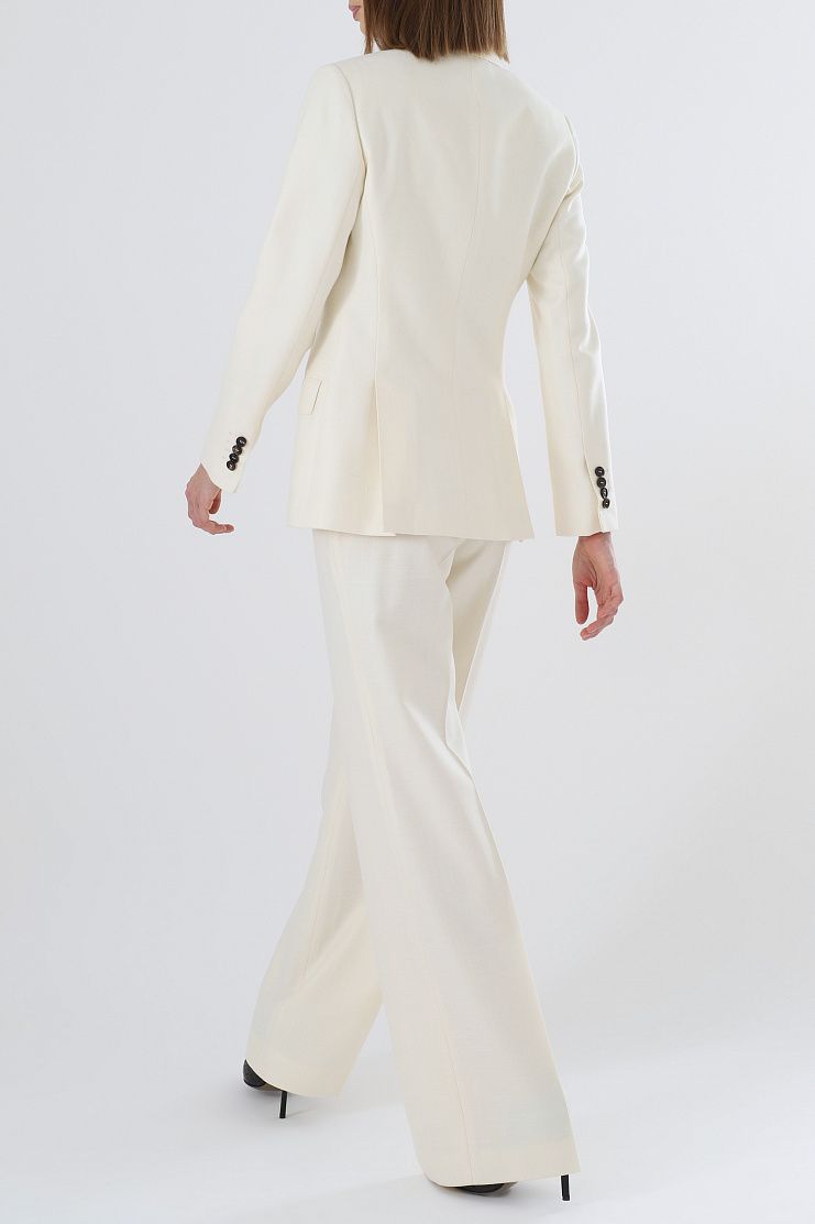 Брюки из кашемира и шелка в комплекте с жакетом того же оттенка составят элегантный костюм для неформального или торжественного мероприятия. Модель прямого кроя, со стрелками, боковыми и задними карманами. Изделие застегивается на молнию и пуговицу.