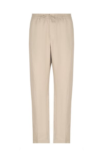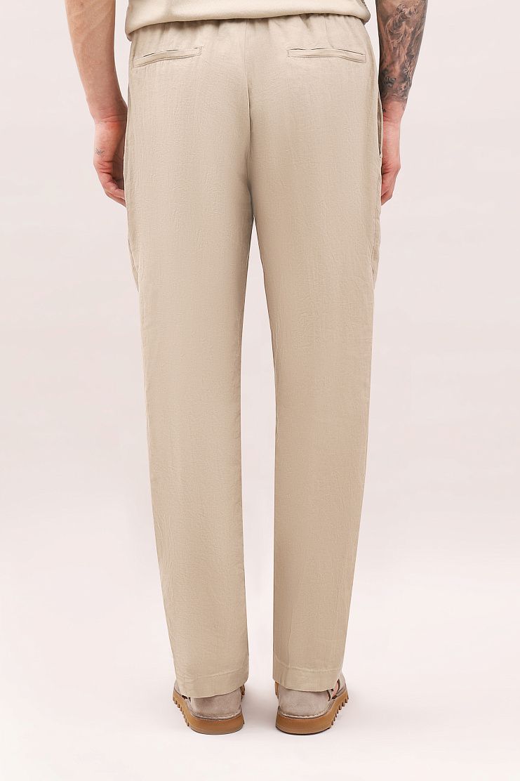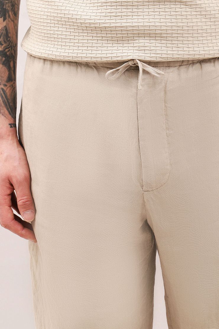Брюки из фактурной льняной ткани отлично подойдут для расслабленного элегантного образа. Модель свободного кроя со стрелками имеет эластичный пояс на кулиске и застежку на молнию и крючок.