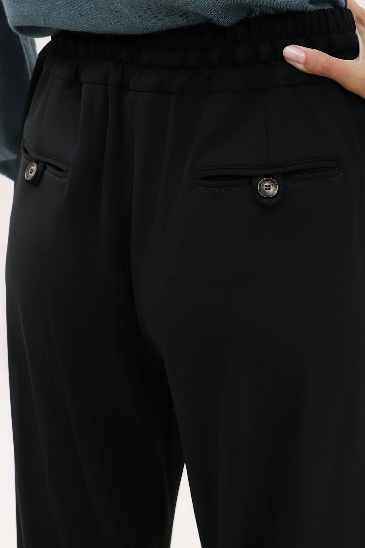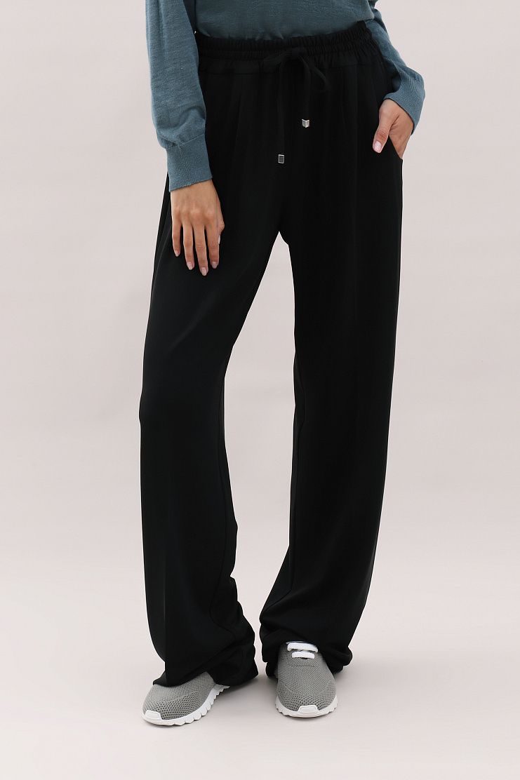 Свободные брюки со стрелками и эластичным поясом на кулиске.