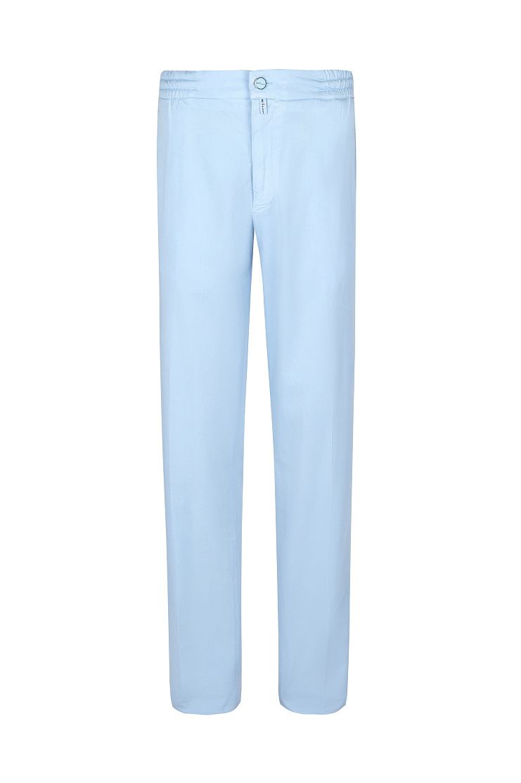 Брюки идеально подойдут для комфортного изысканного образа. Модель свободного кроя с эластичным поясом на кулиске и застежкой на молниюи фирменную пуговицу.