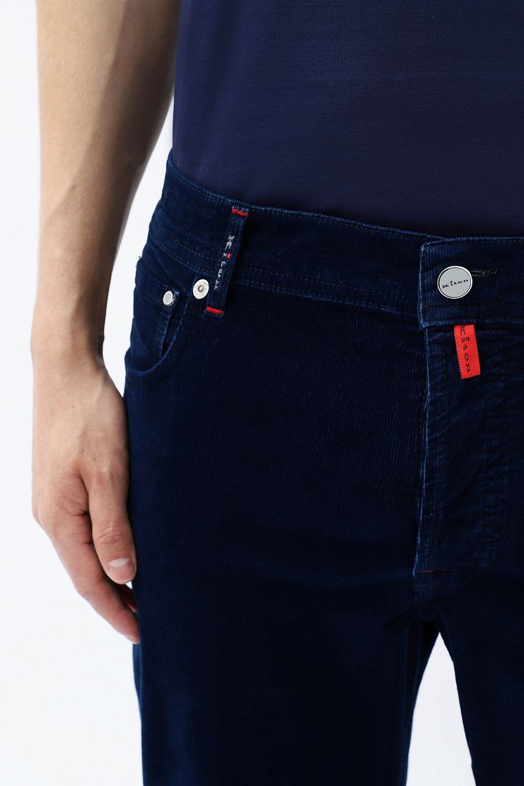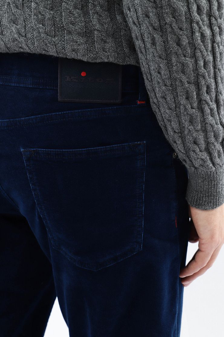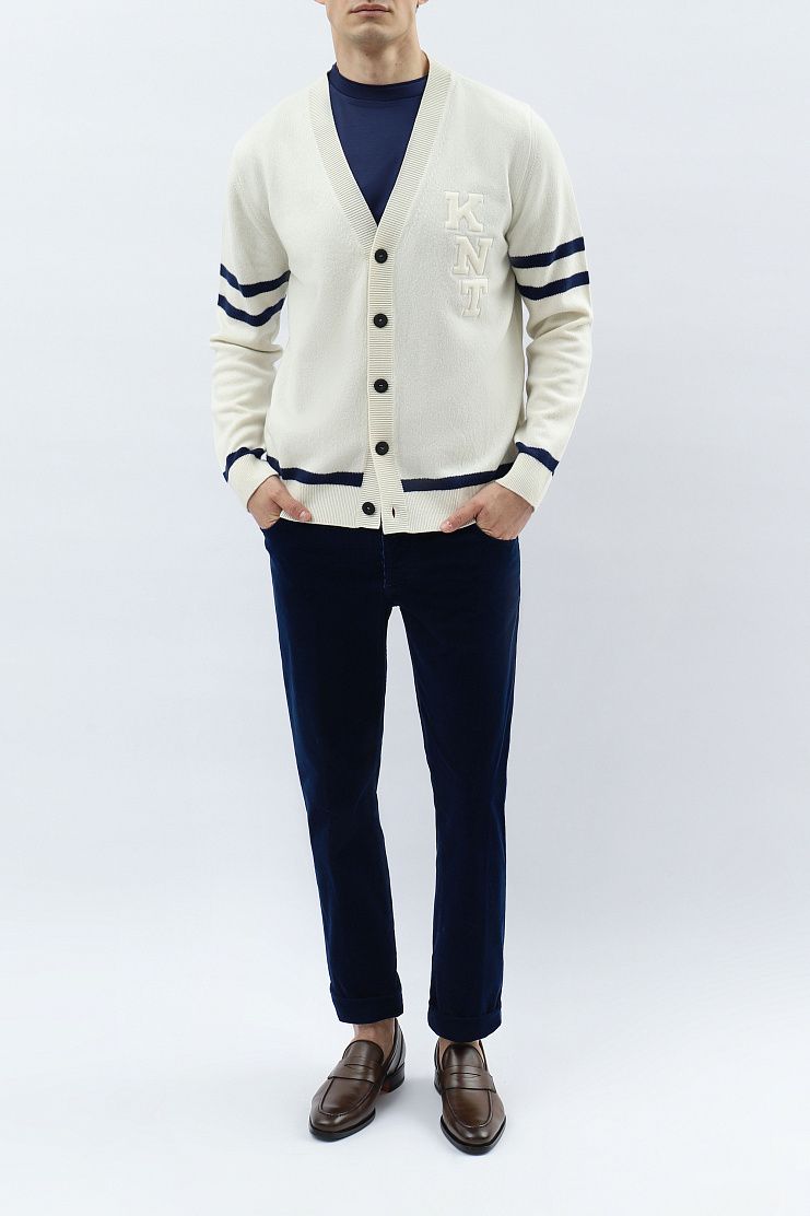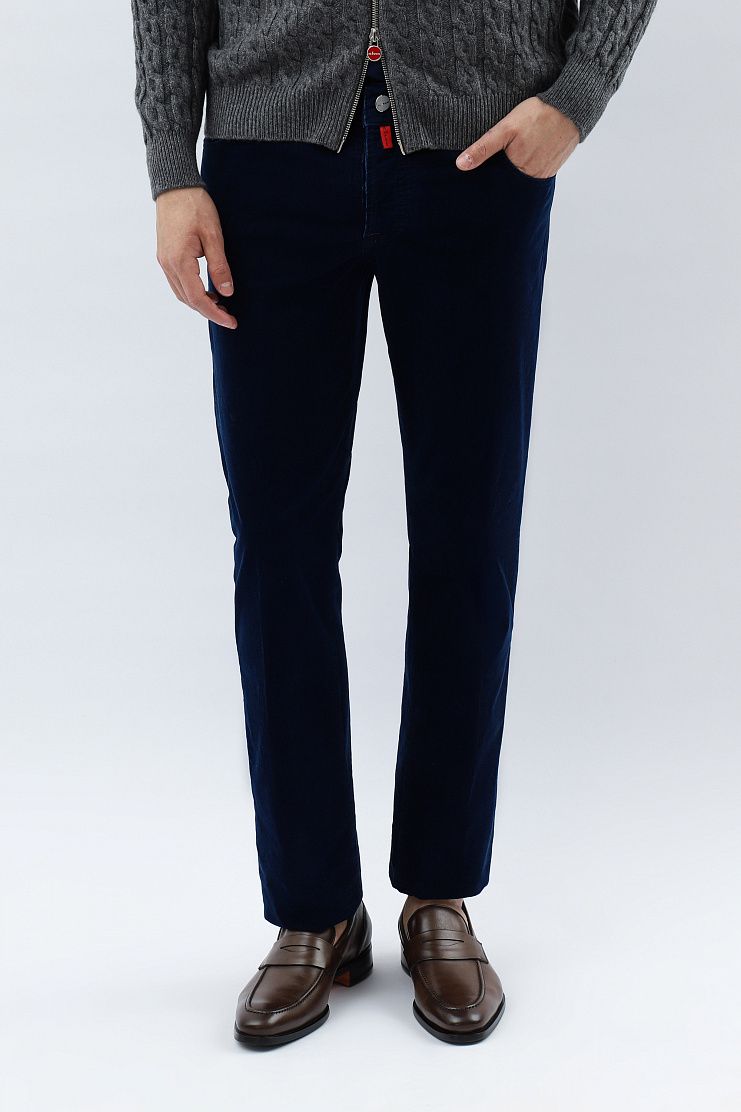 Брюки из микровельвета — трендовый элемент повседневного гардероба в этом сезоне. Модель прямого кроя с застежкой на молнию и металлическую пуговицу с логотипом.
