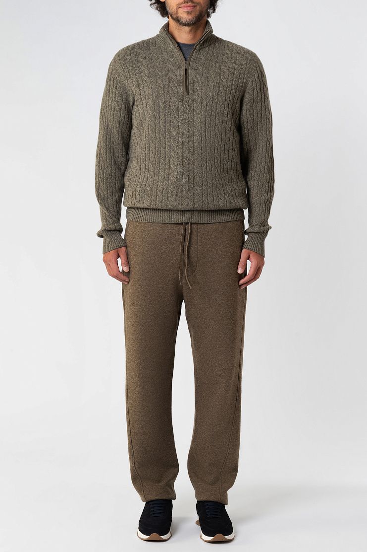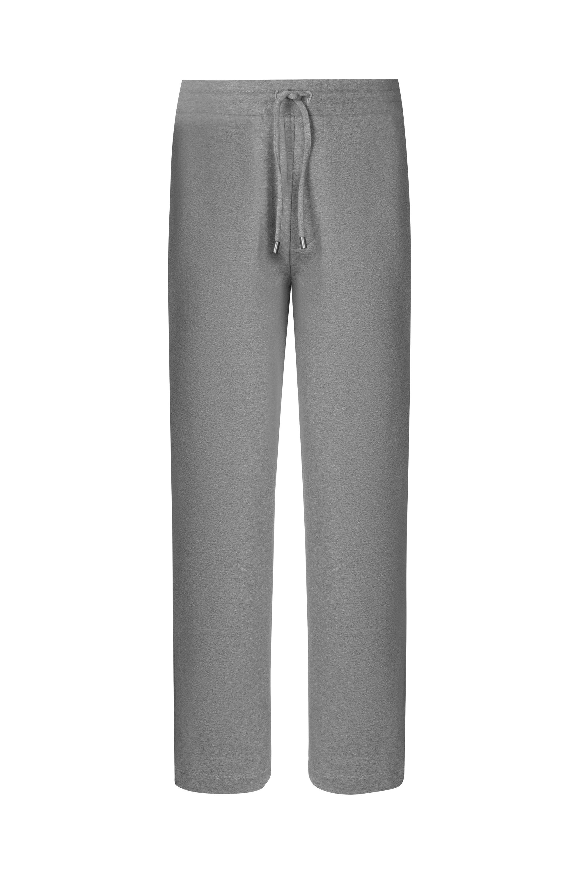 Меланжевые брюки сшили из мягкого тонкого кашемира с добавлением эластичных волокон. Благодаря широкому поясу на кулиске они комфортно садятся по фигуре. Модель дополнена боковыми прорезными карманами и рельефными швами. Отличный вариант для расслабленных образов в спортивном стиле.