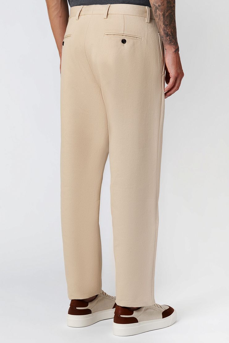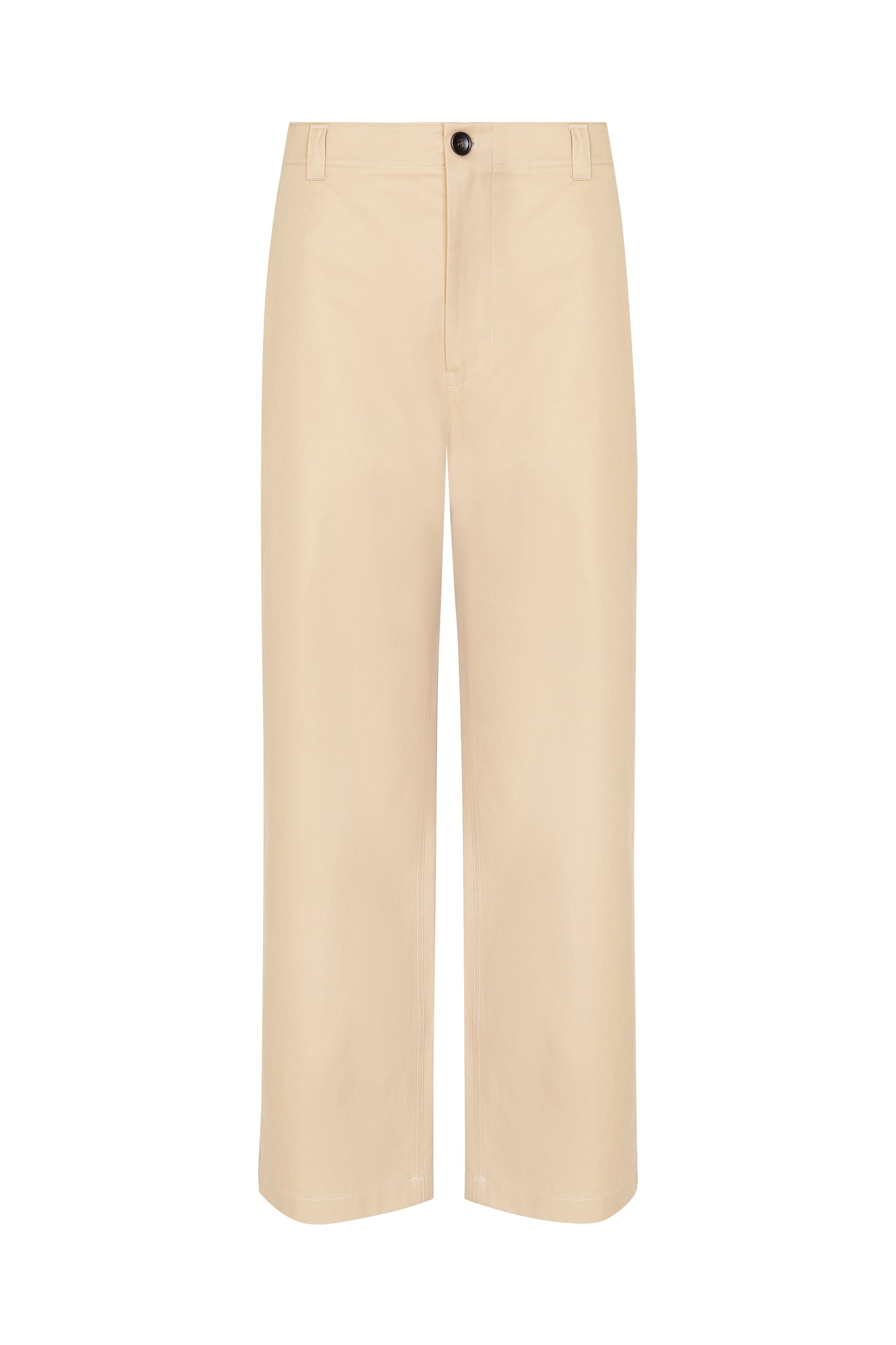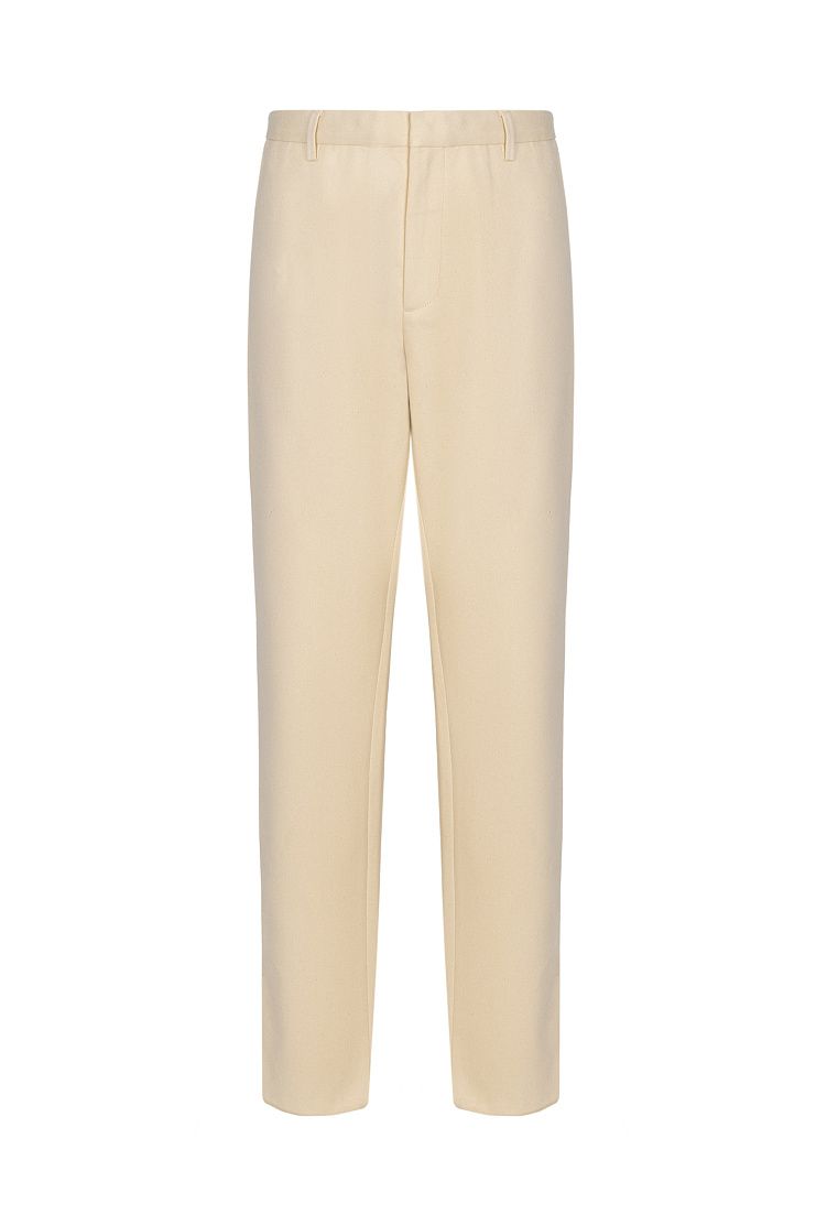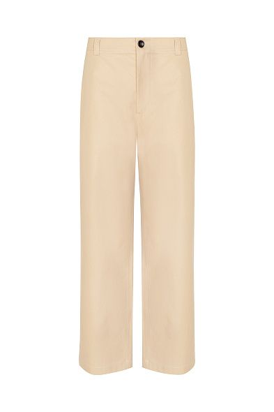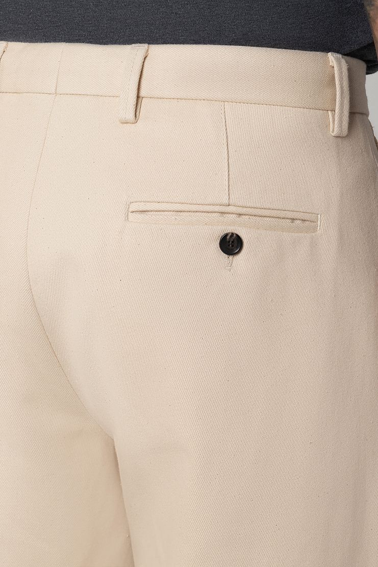 Для пошива немного зауженных брюк использовали плотный неокрашенный деним. Модель с боковыми и задними карманами застегивается на молнию и крючок. Универсальный вариант для летних образов с футболками, рубашками или толстовками.