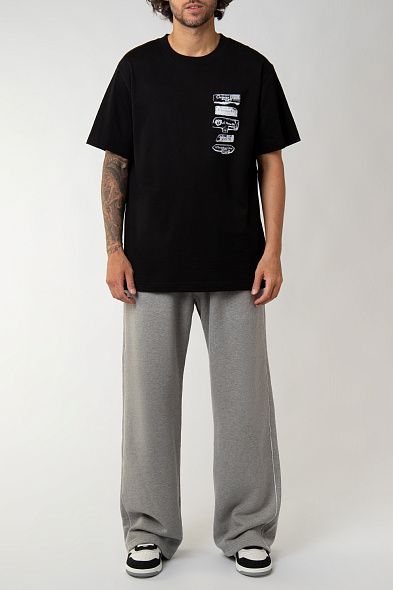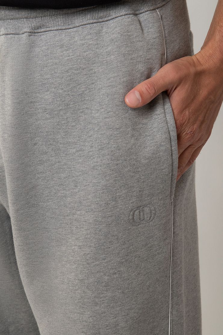 Для пошива широких спортивных брюк использовали мягкий хлопковый трикотаж. Модель с широким эластичным поясом на кулиске. Модель дополнена боковыми и задними карманами.