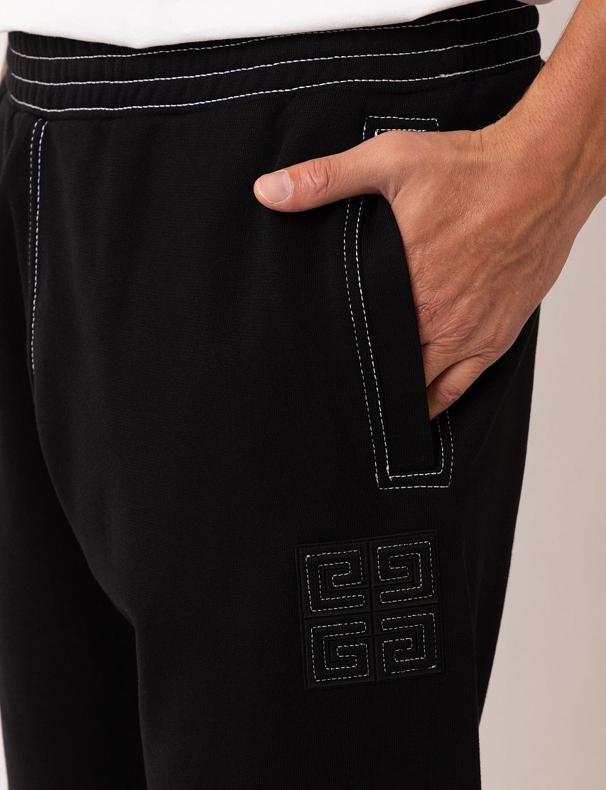 Джоггеры с эластичным поясом и манжетами сшили из мягкого хлопкового футера. Приятный на ощупь материал хорошо дышит и сохраняет тепло, поэтому в таких брюках будет комфортно в течение дня. Модель дополнена боковыми карманами и украшена нашивкой с логотипом Givenchy 4G.