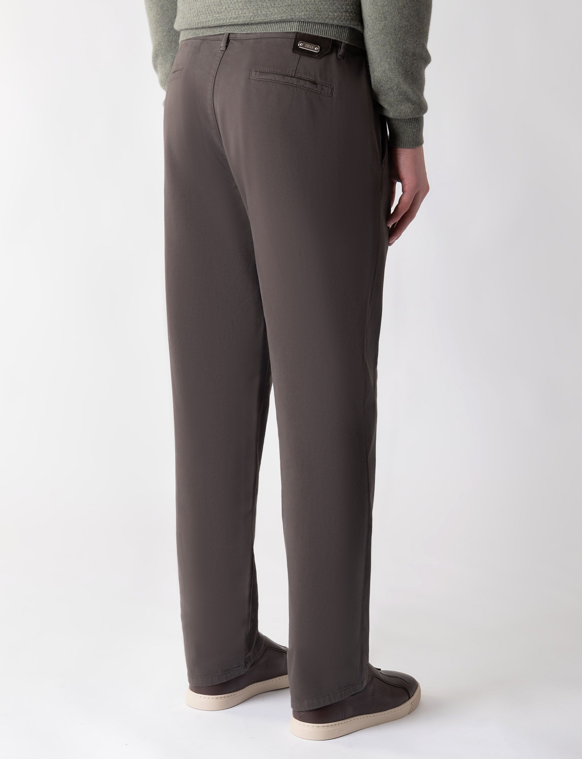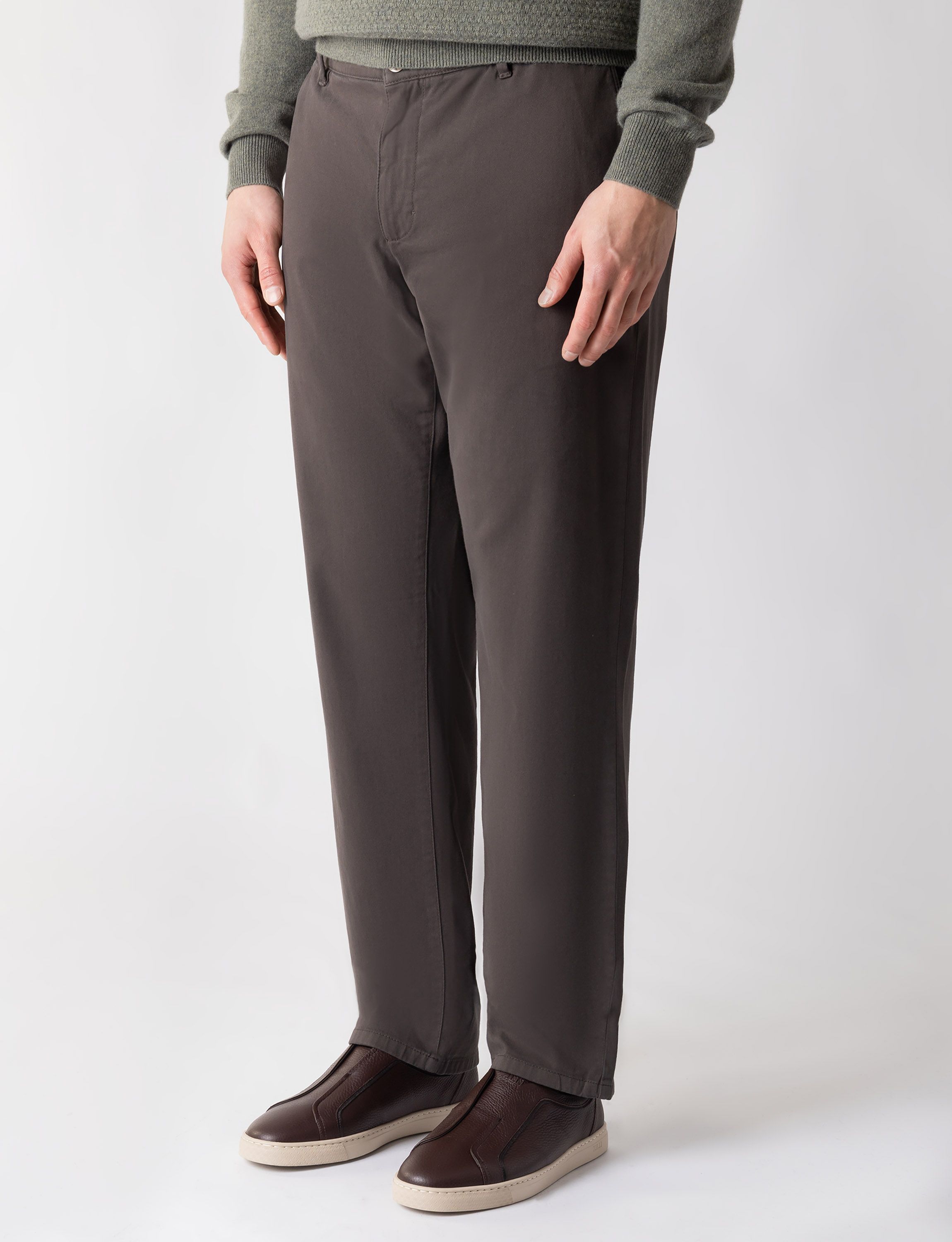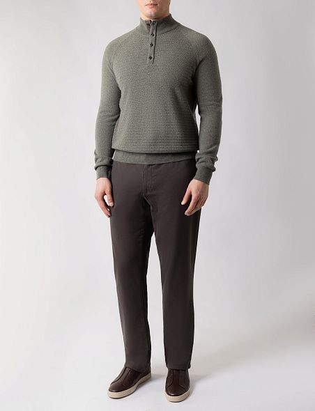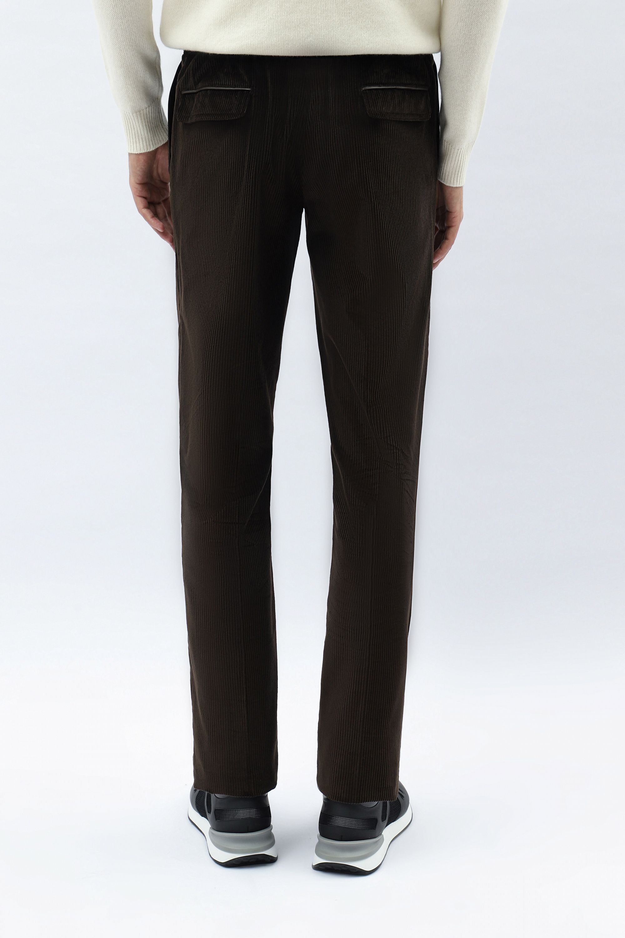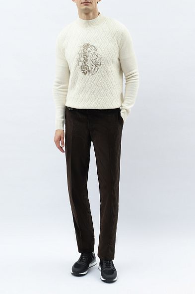 Брюки с кожаной отделкой идеально подойдут для элегантного повседневного образа. Модель прямого кроя со стрелками и застежкой на молнию и пуговицу.