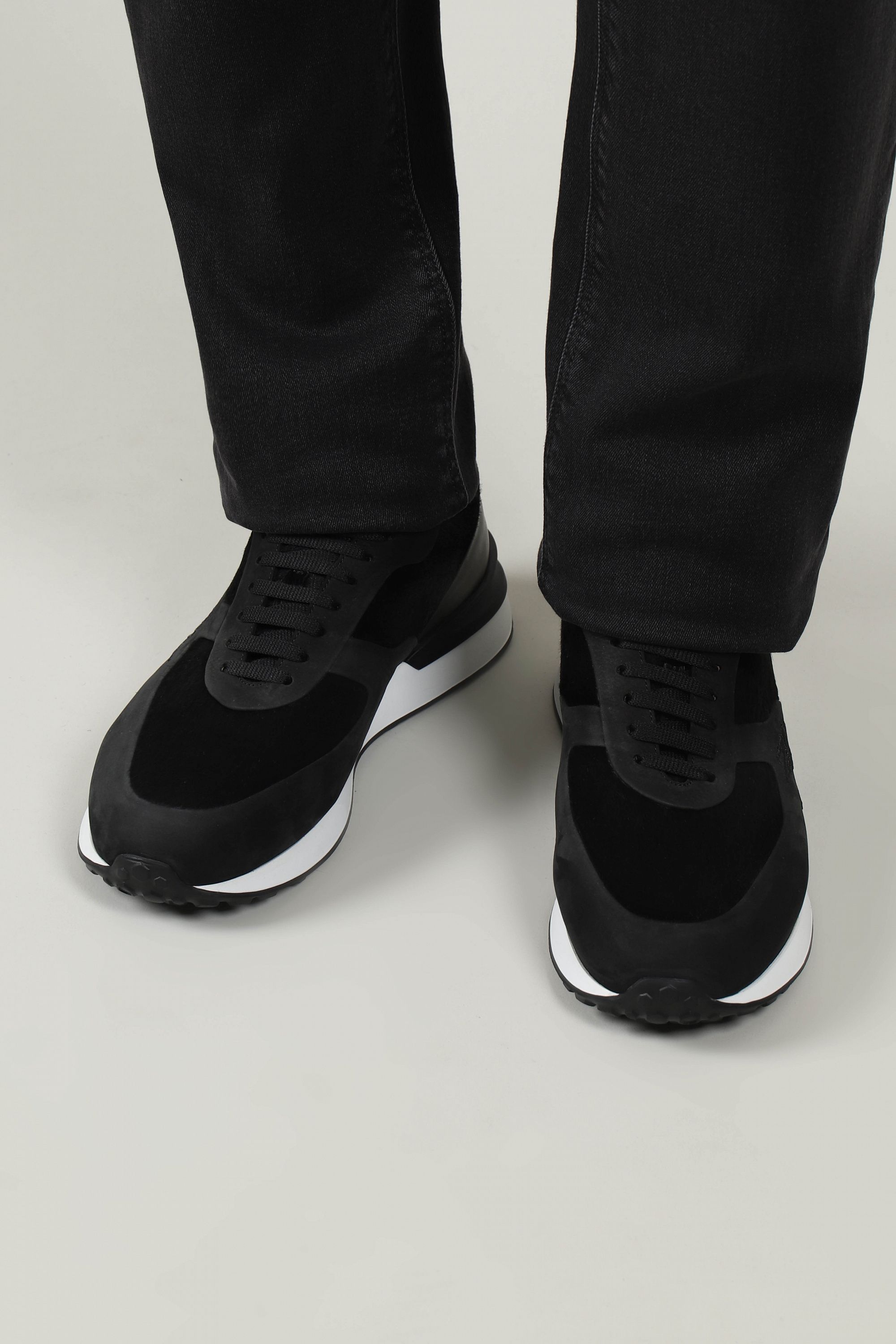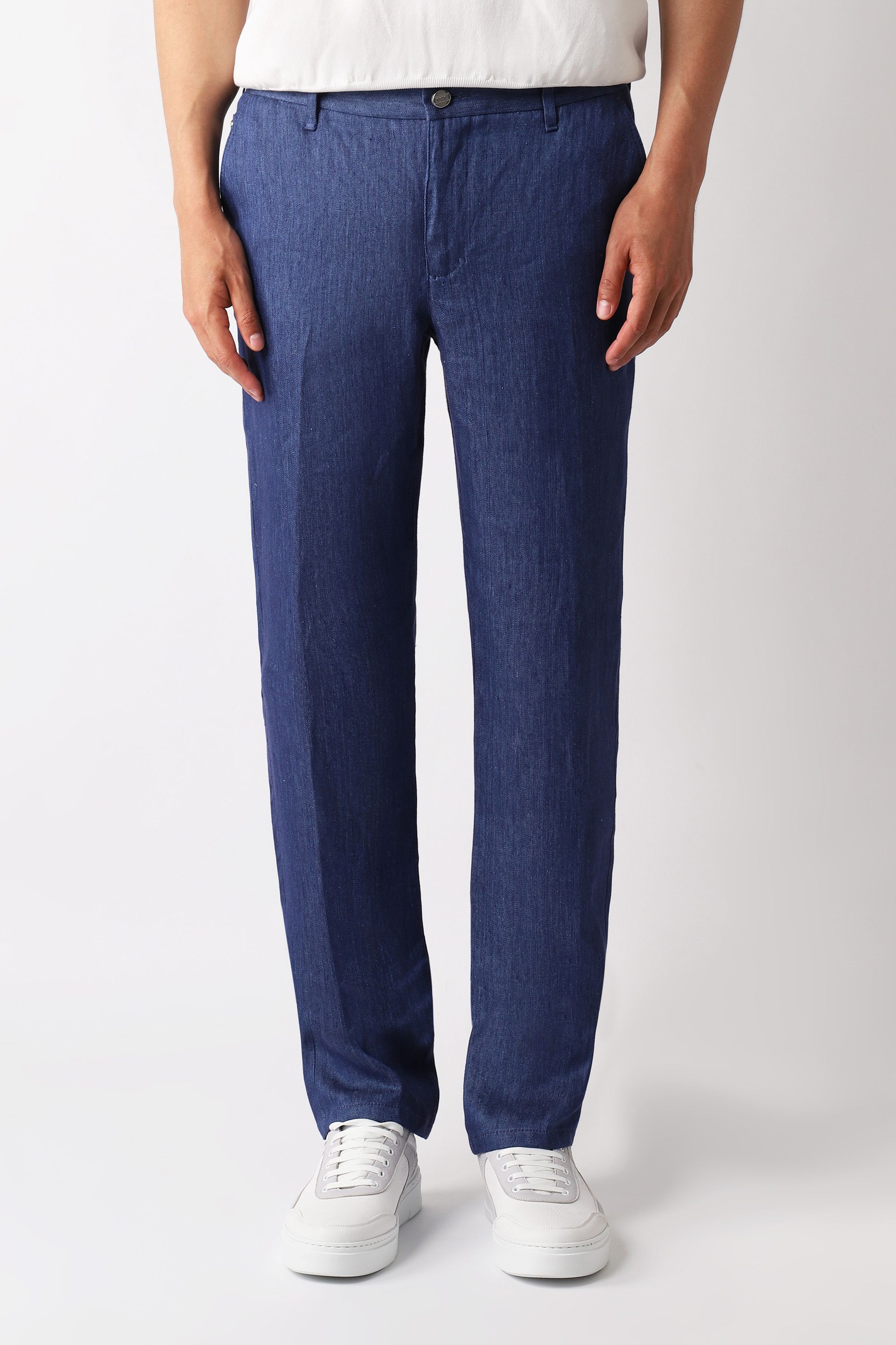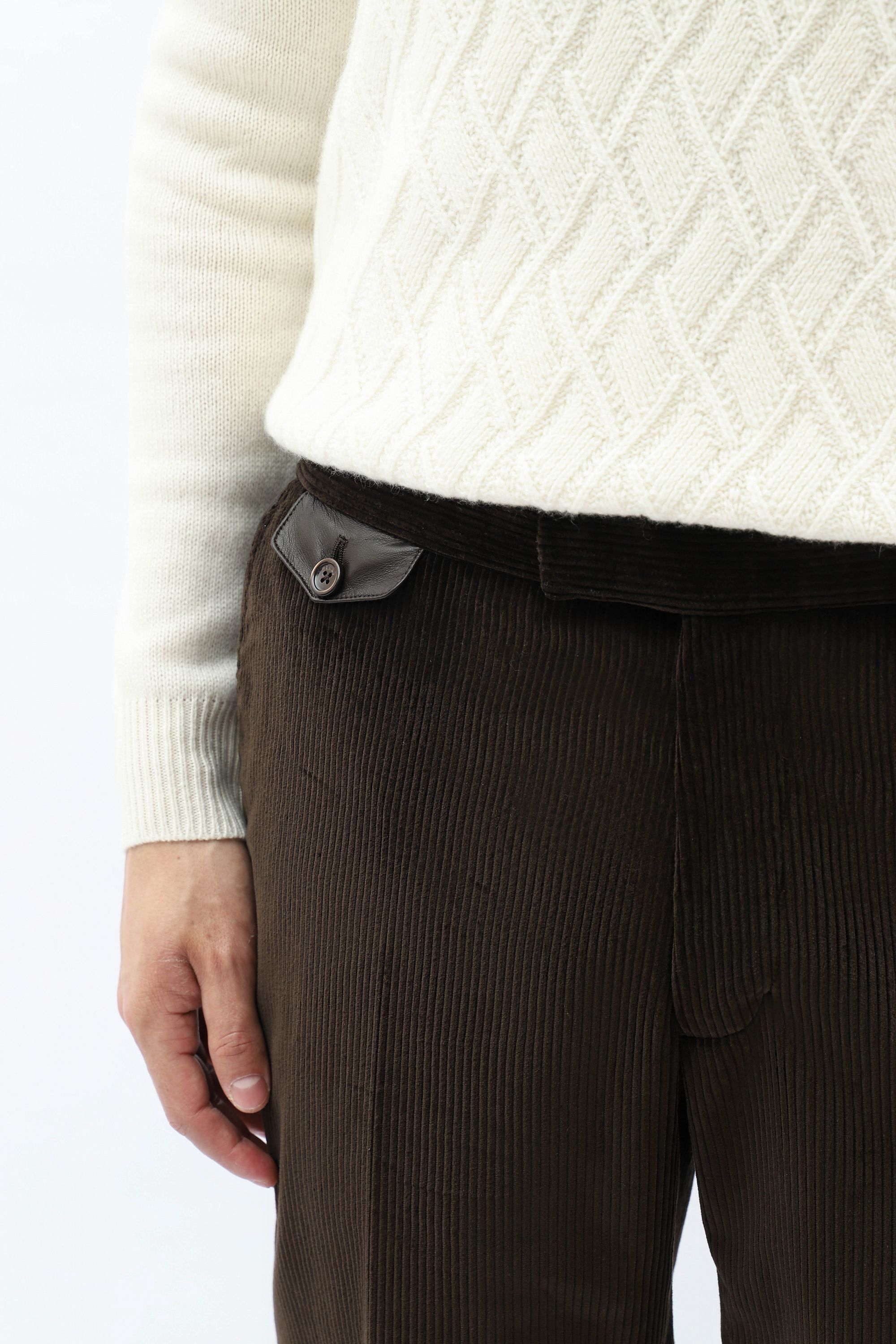 Брюки с кожаной отделкой идеально подойдут для элегантного повседневного образа. Модель прямого кроя со стрелками и застежкой на молнию и пуговицу.