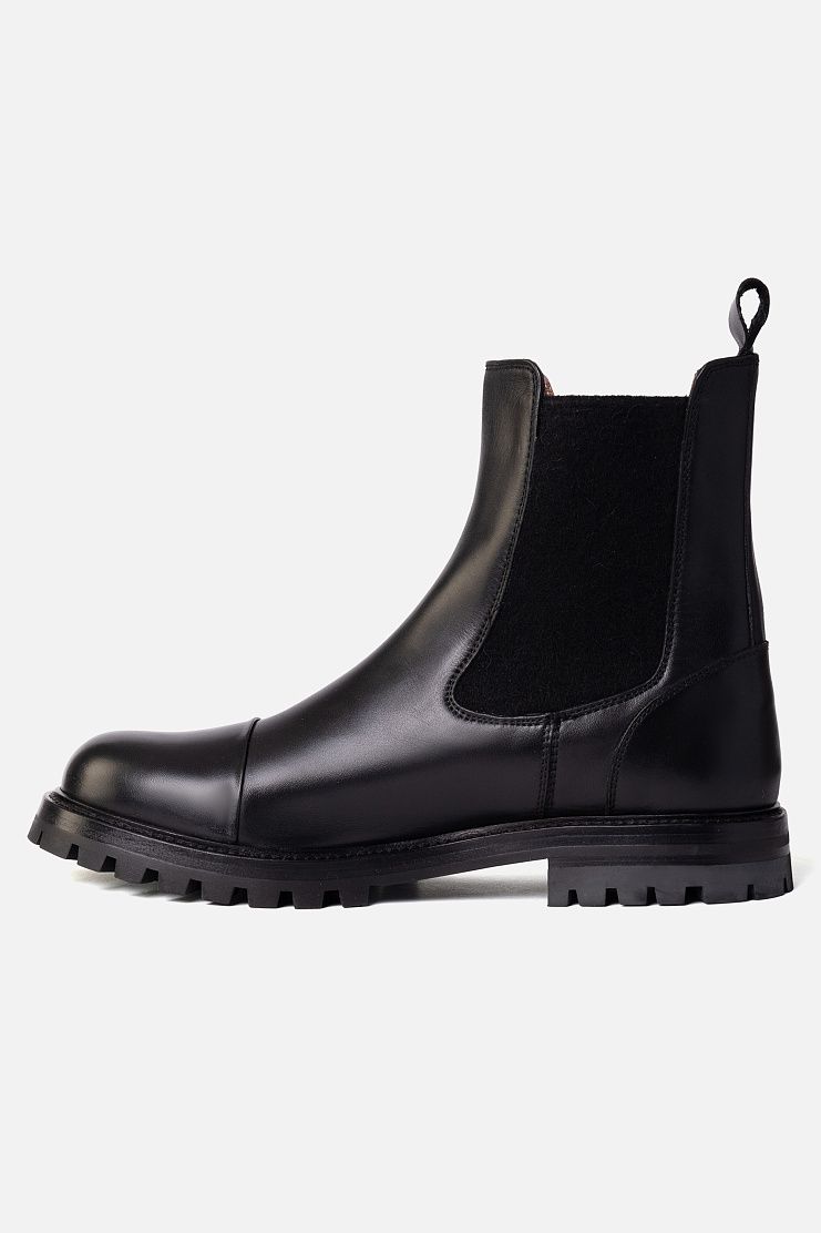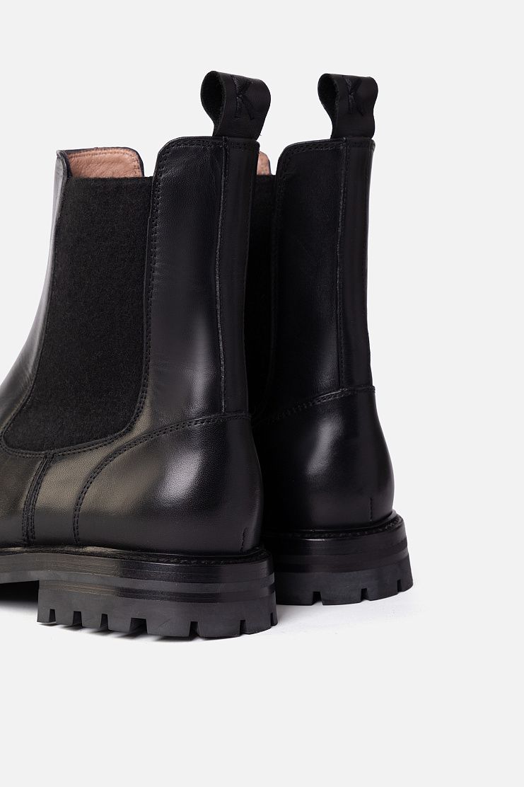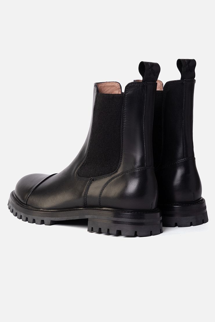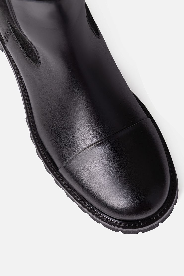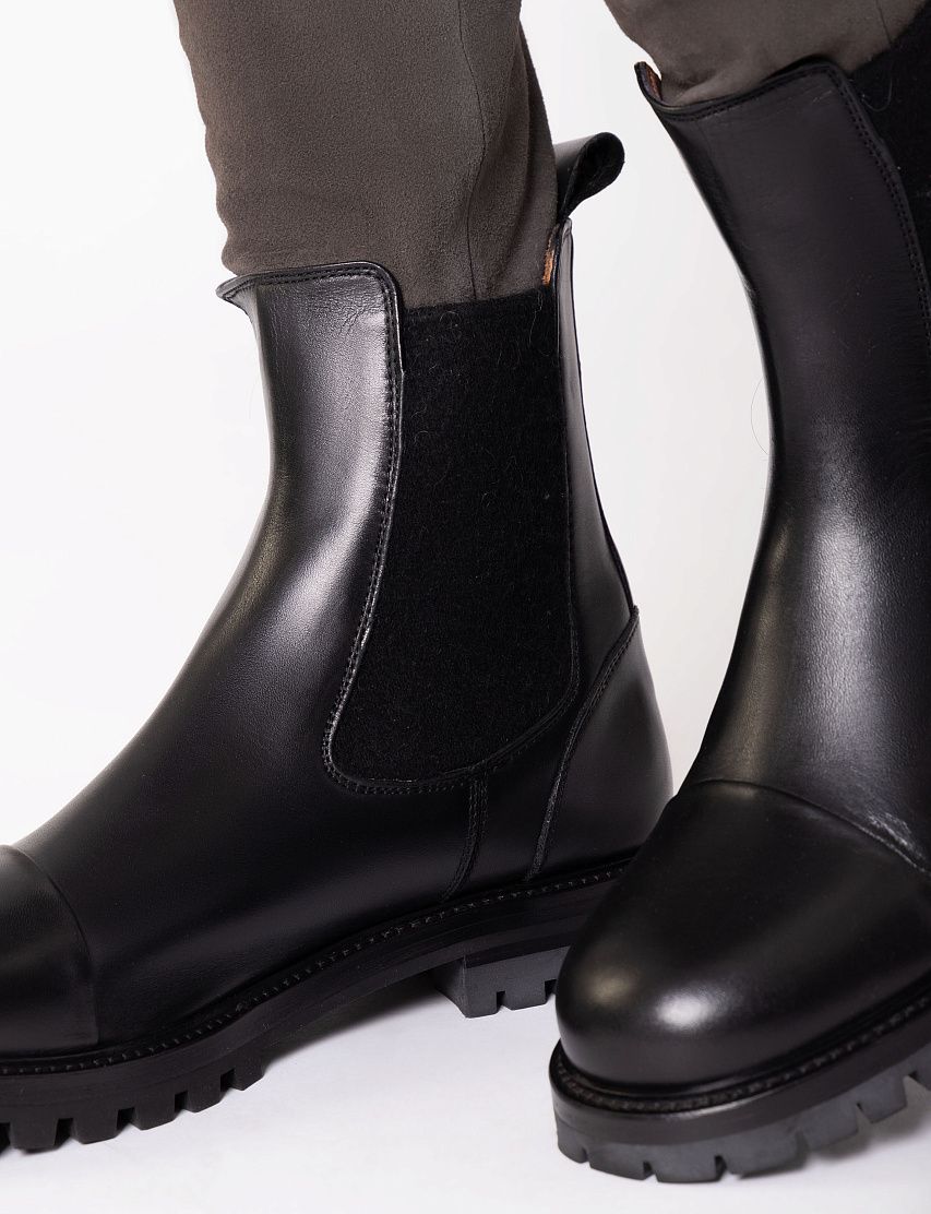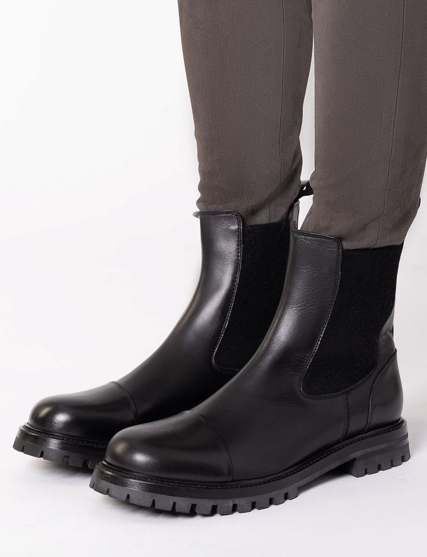 Кожаные ботинки с эластичными боковыми вставками станут незаменимы дождливой осенью. Массивная протекторная подошва надежно защитит от луж и не даст ногам скользить. Челси идеально дополнят повседневные образы с брюками и юбками.