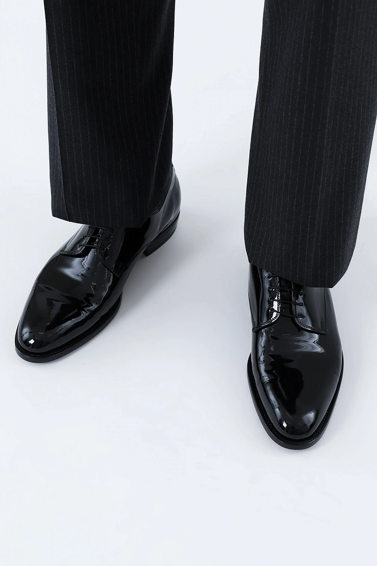 Дерби из лаковой кожи шикарно дополнят деловой костюм. Модель выполнена на кожаной подкладке.