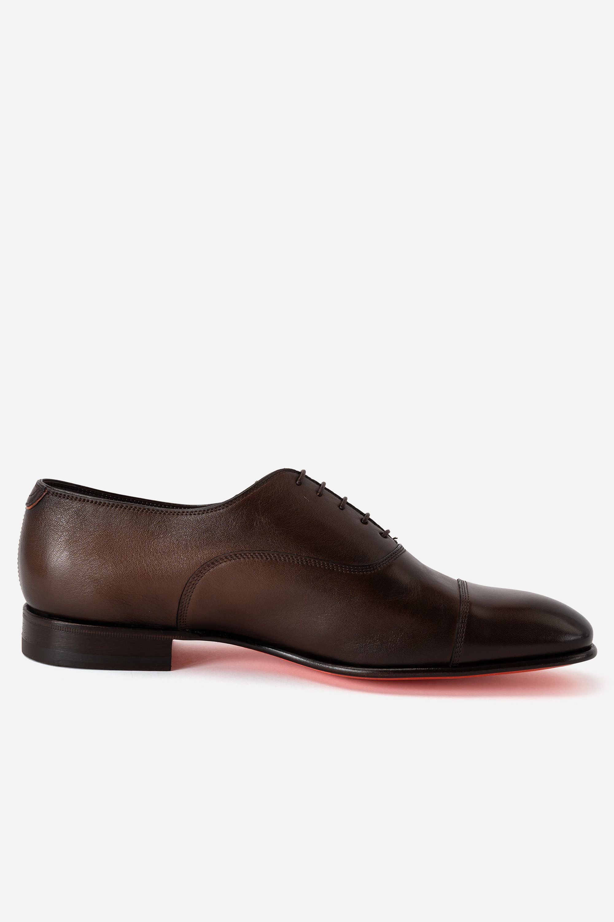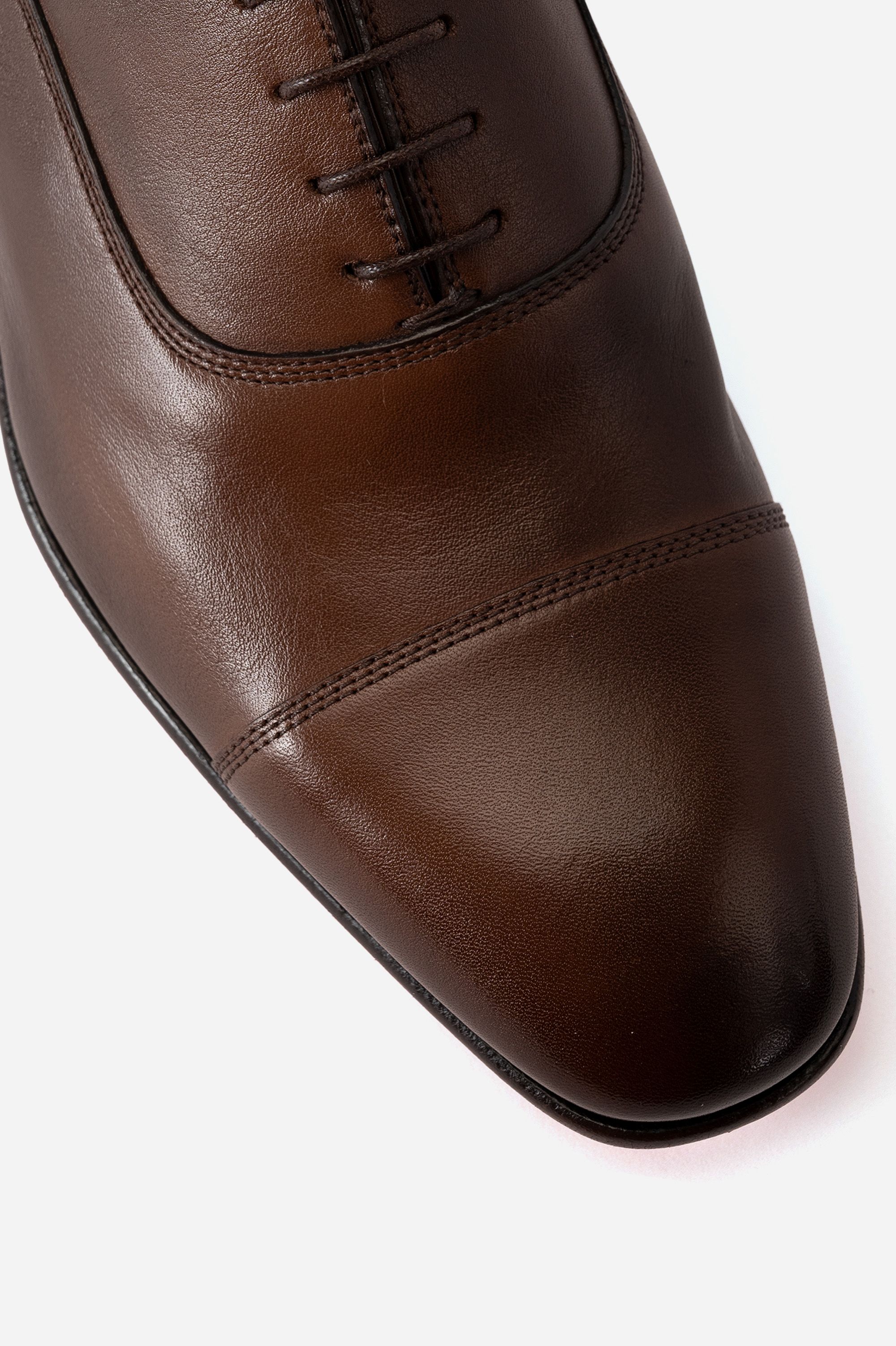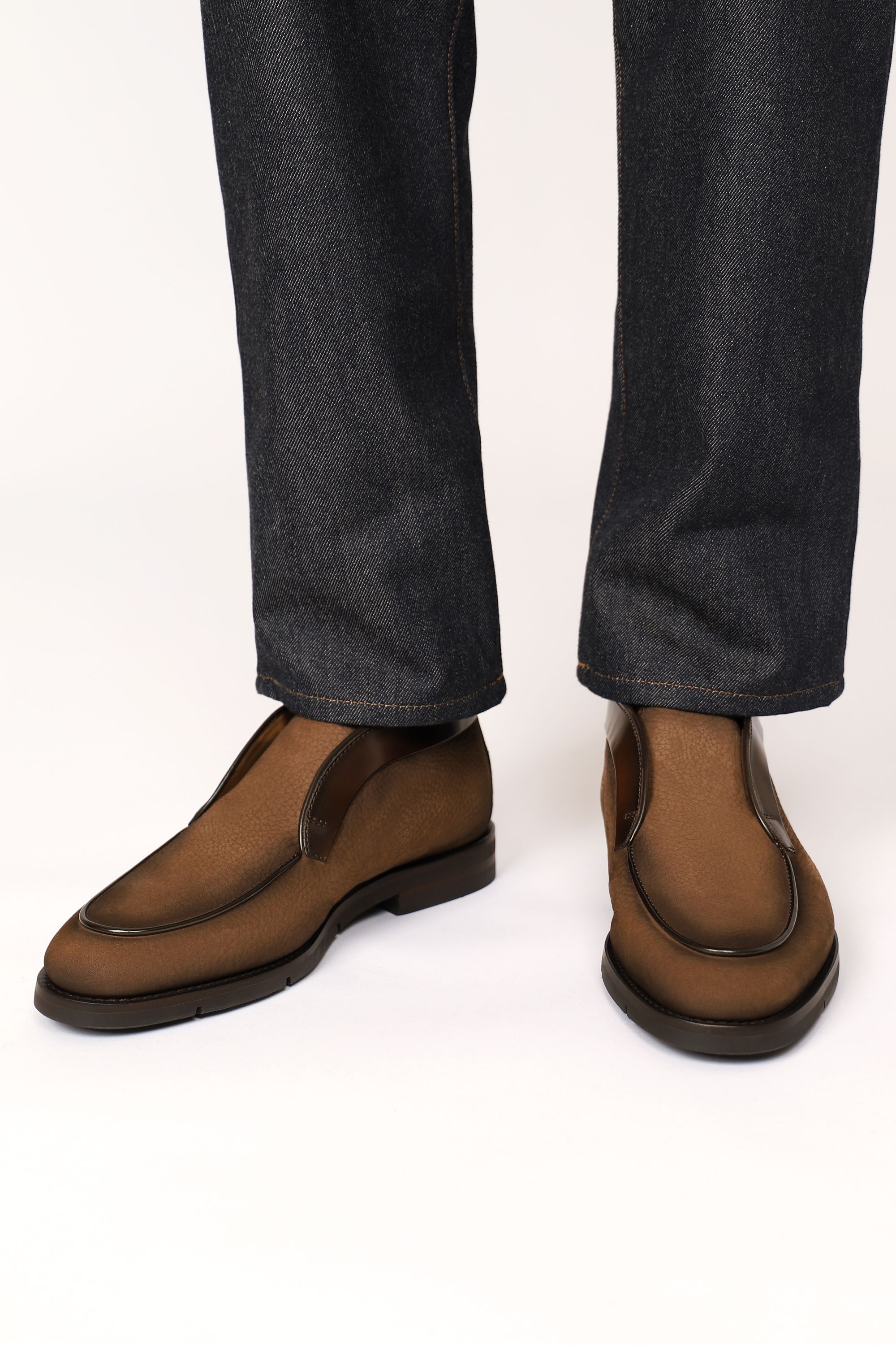 Ботинки с открытой шнуровкой выполнили из мягкой, тщательно отполированной кожи. Пара отличается широкой протекторной подошвой, которую для большей прочности и гибкости прикрепили с помощью конструкции Goodyear.