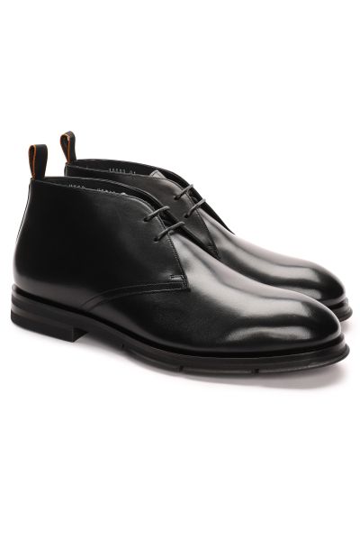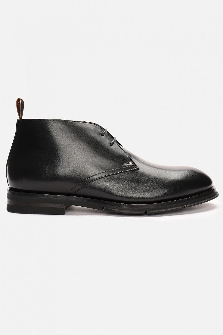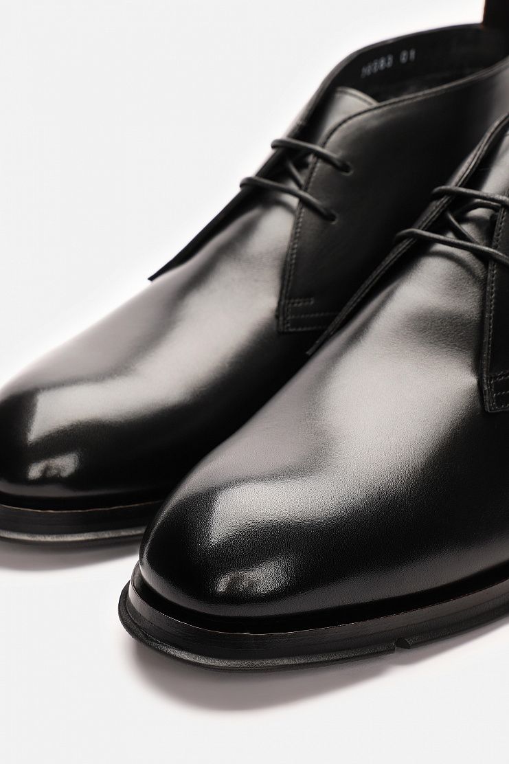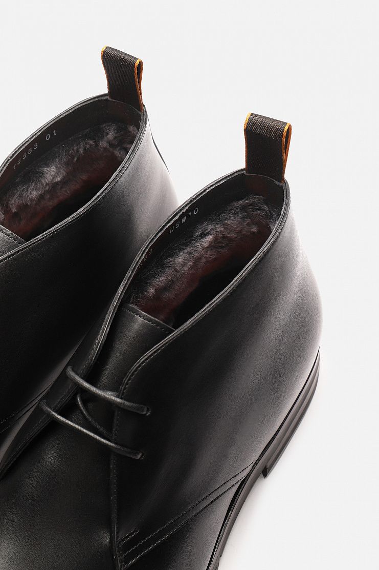 Кожаные дезерты с теплой меховой подкладкой отлично подойдут для холодной погоды. Модель на короткой шнуровке имеет резиновую подошву и небольшой каблук.