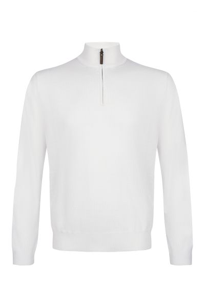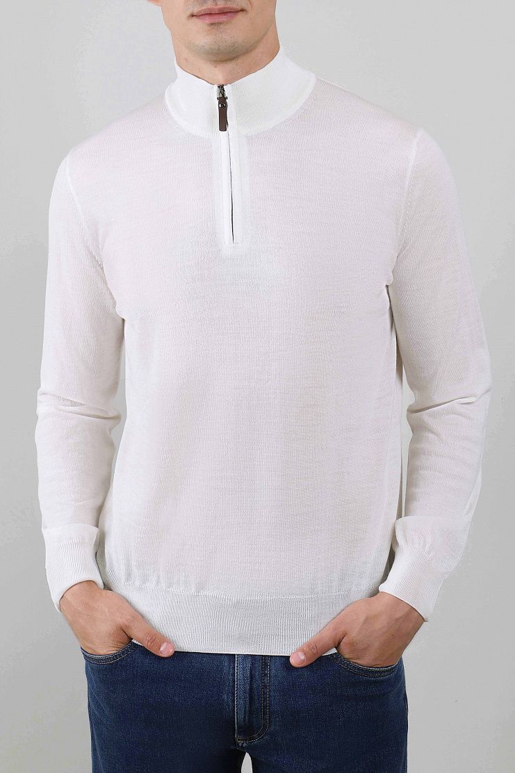 Джемпер великолепно подойдет для повседневного элегантного или городского образа. Модель свободного кроя имеет воротник-стойку на молнии с кожаной деталью.