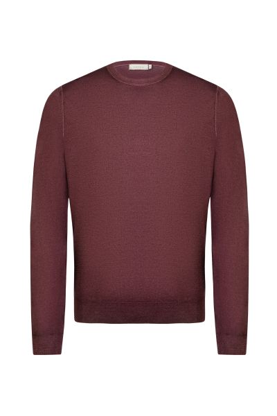 Джемпер выполнен из тонкого трикотажа на основе шерсти и шелка. Модель с круглой горловиной и длинными рукавами дополнена отделкой в рубчик на манжетах и поясе.