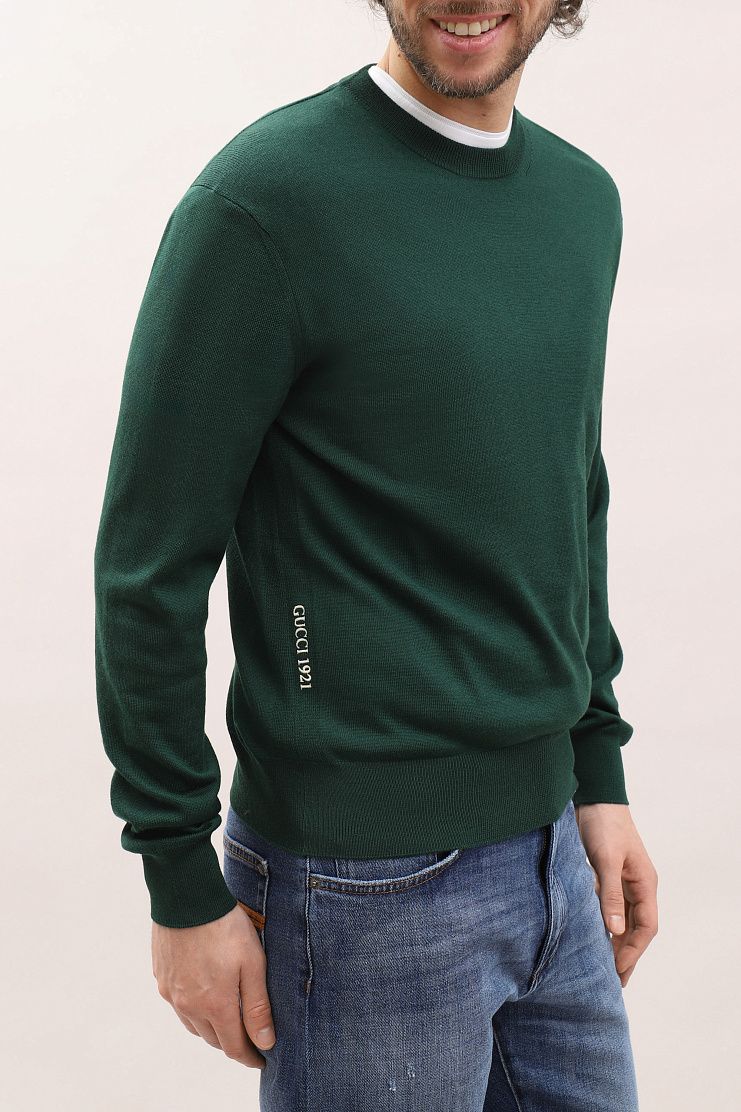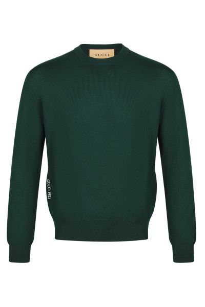 Джемпер из тонкой шерсти с принтованным логотипом Gucci и годом основания бренда на боку подойдет для комфортного непринужденного образа. Модель свободного кроя имеет круглый вырез, манжеты и нижний край из трикотажной резинки.