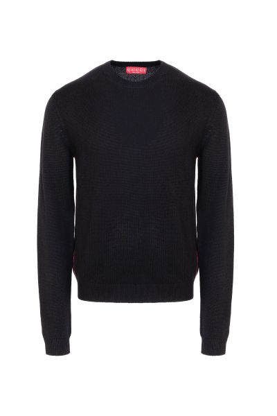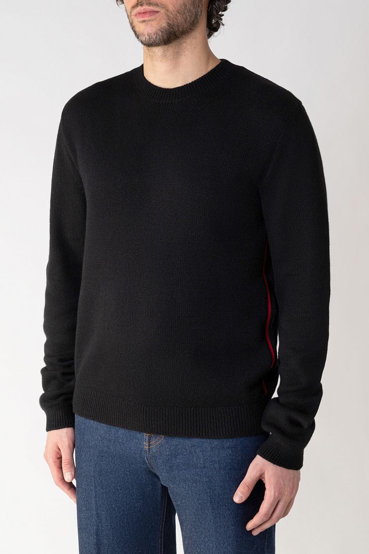 Джемпер из нежного и теплого кашемира идеален для прохладных дней. Модель с длинными рукавами дополнена ребристой отделкой на вороте, манжетах и по нижнему краю. По бокам дизайнеры украсили вещь тонкими полосами, повторяющими цвета фирменной ленты Web.