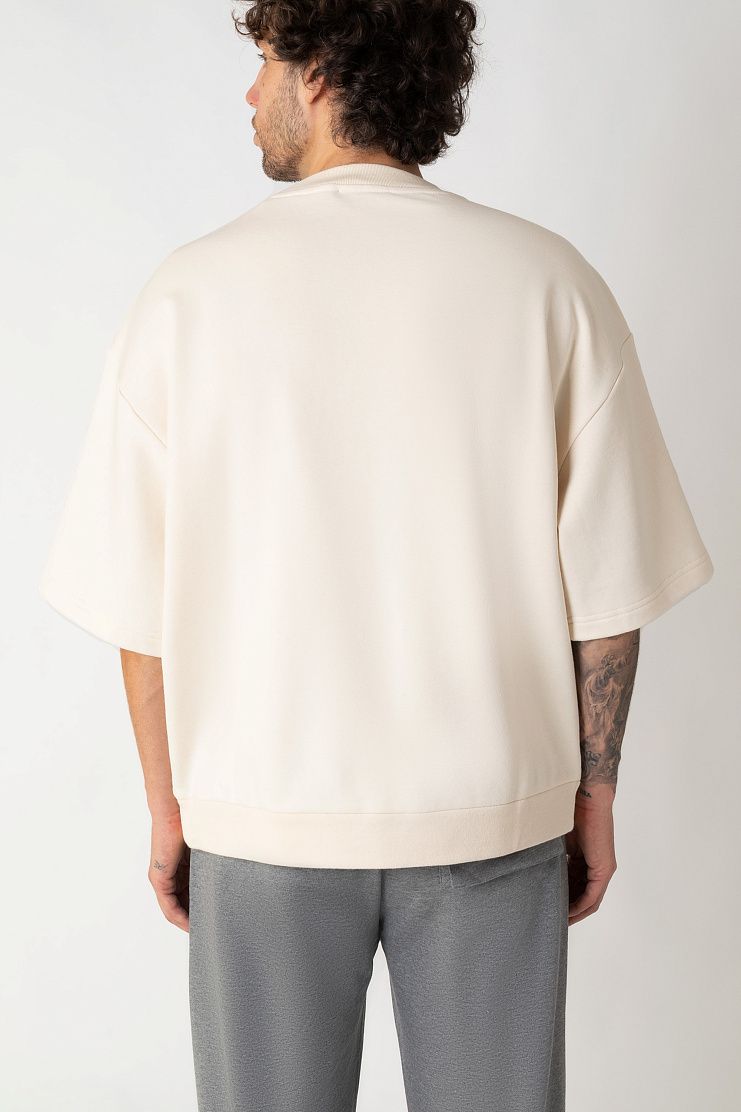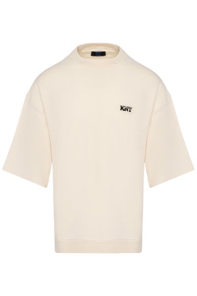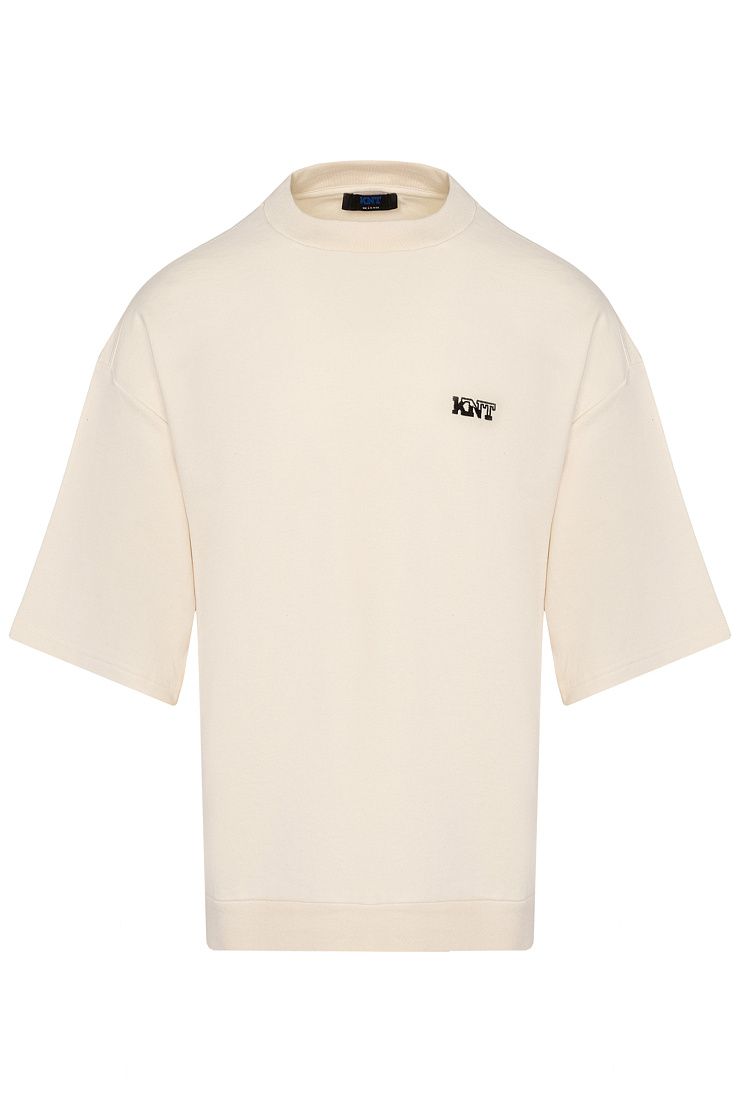 Футболка кроя оверсайз выполнена из плотного хлопкового трикотажа с добавлением шелка. Модель с круглым вырезом и спущенной линией плеч дополнена широким поясом в рубчик и вышитым логотипом. Такая футболка легко впишется в расслабленный образ с шортами и джинсами.