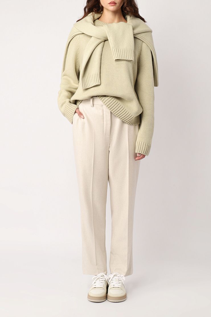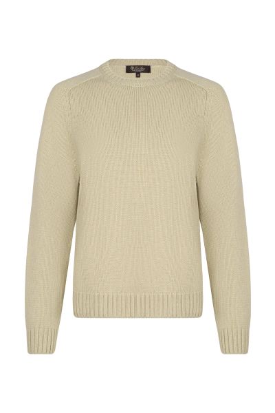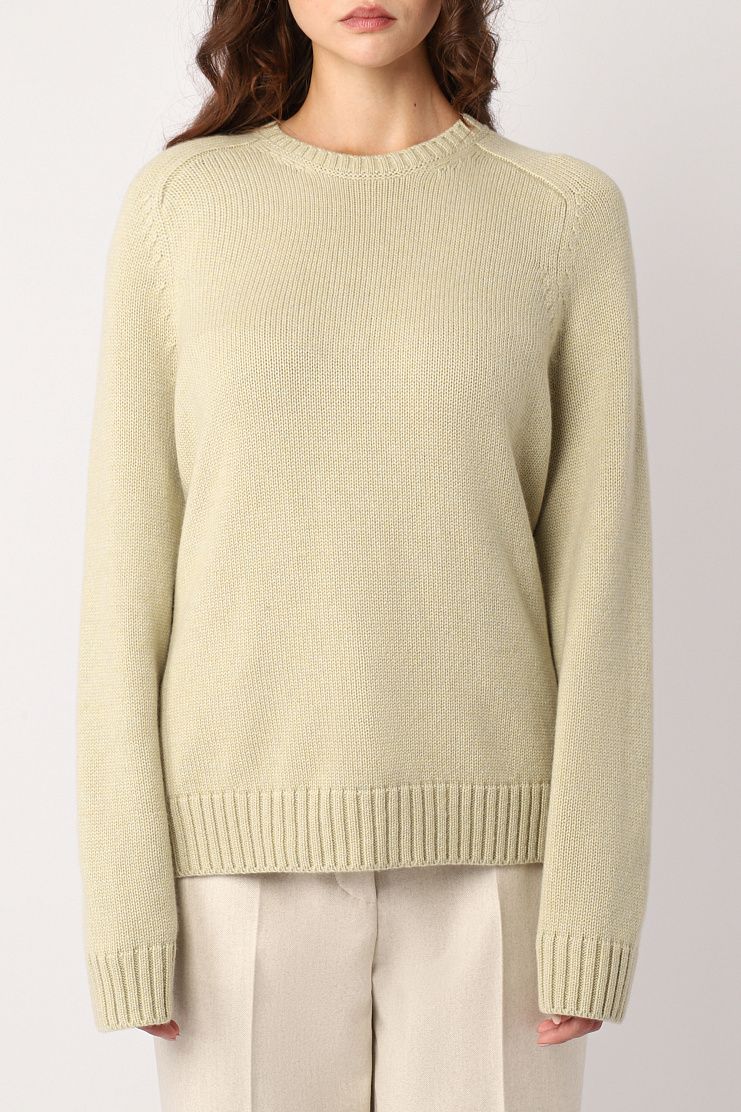 Минималистичный джемпер свободного кроя выполнен из мягкого беби-кашемира. Такой материал гораздо нежнее и тоньше обычного кашемира, при этом он сохраняет исключительную износостойкость и прочность. Джемпер дополнен круглым вырезом, рукавами реглан, манжетами и подолом в рубчик.