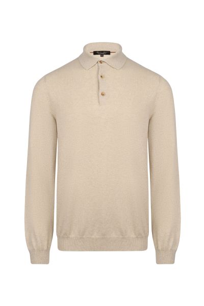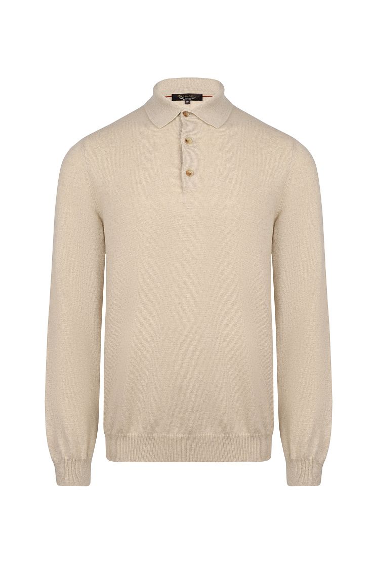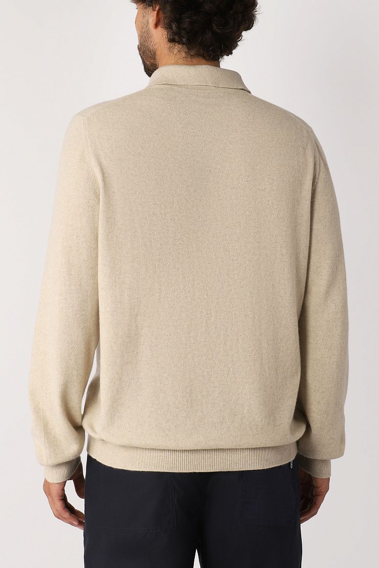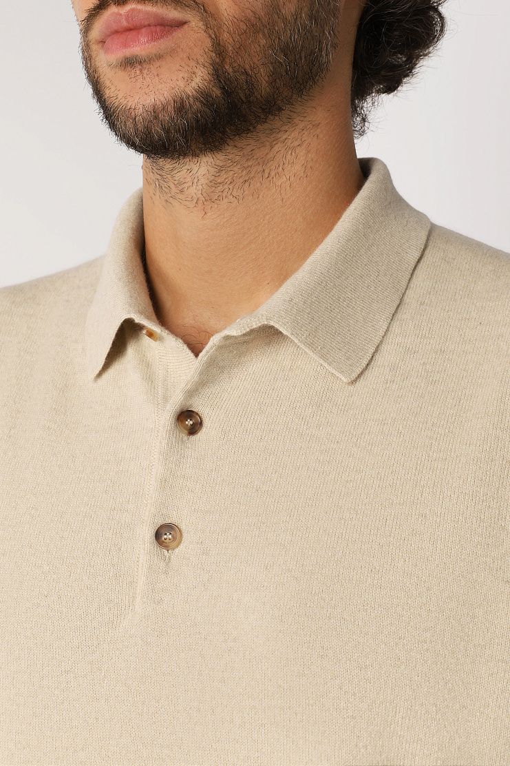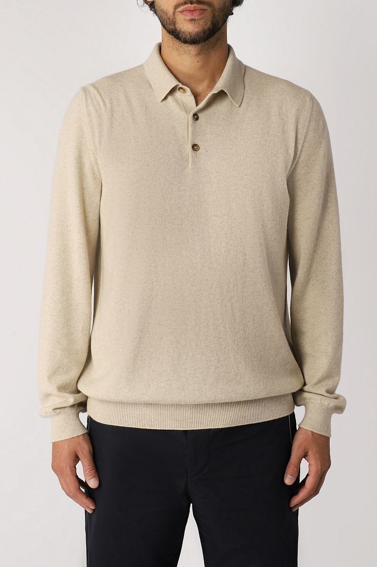 Лаконичный джемпер прямого кроя выполнен из нежного baby-кашемира. Такой материал из пуха козлят редкой породы легче и теплее обычного кашемира. Поло дополнено отложным воротником на пуговицах, фактурным подолом и манжетами.