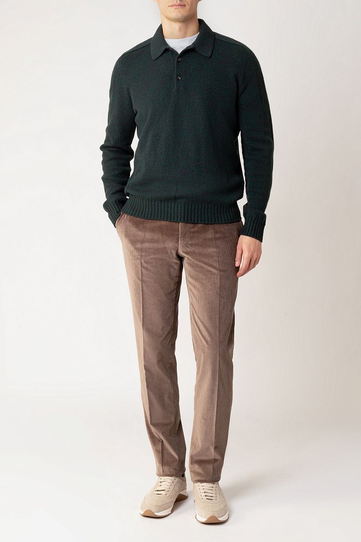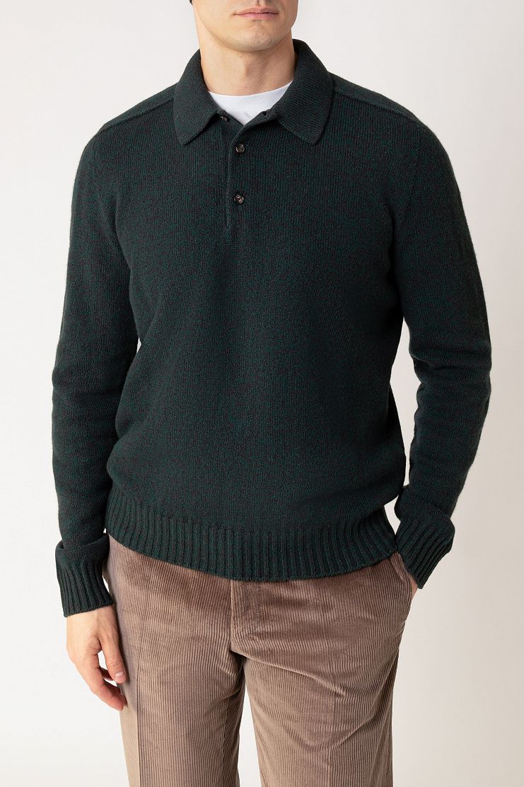 Джемпер выполнен из теплой и мягкой овечьей шерсти. Модель классического кроя дополнена воротником-поло с планкой на роговых пуговицах и ребристой отделкой на манжетах и по низу. Вещь отлично впишется в повседневный образ с брюками и кроссовками.
