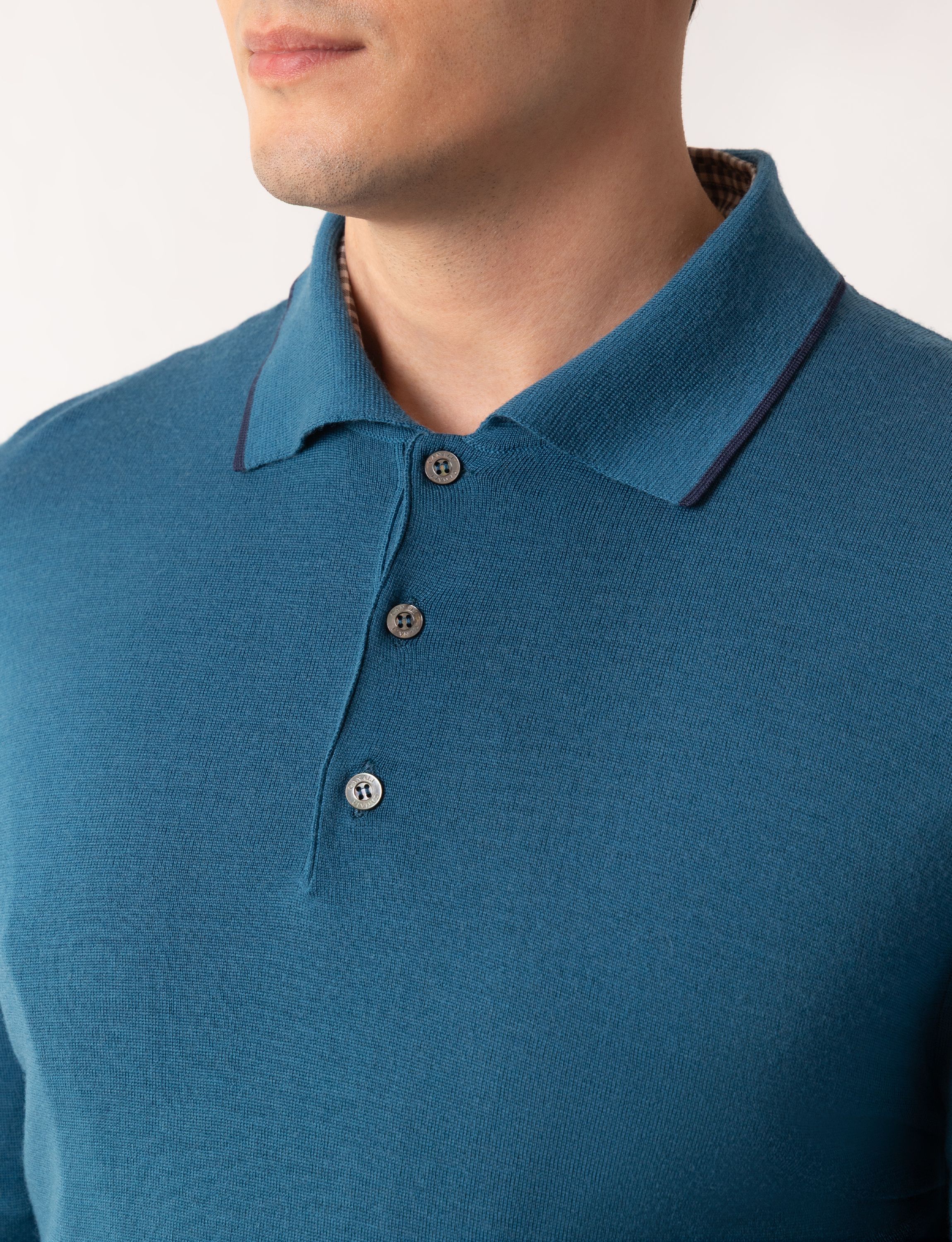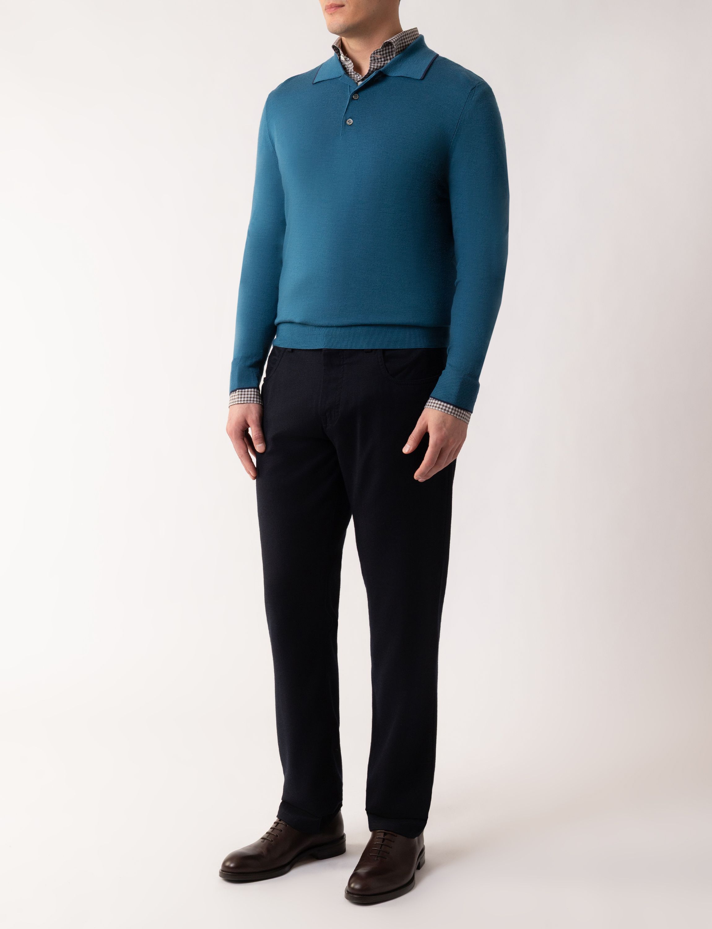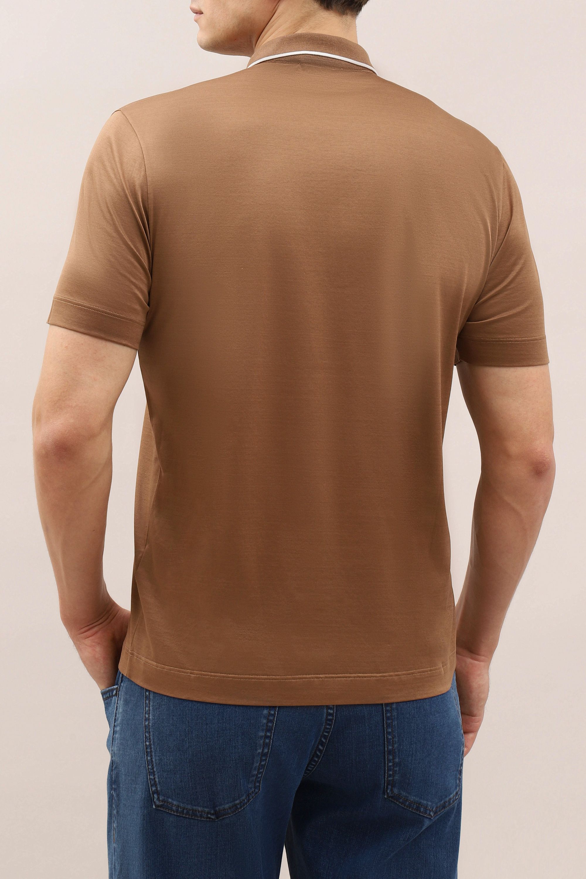 Джемпер-поло с белой каймой на воротнике отлично подойдет для непринужденного элегантного образа. Модель свободного кроя имеет короткие рукава и отложной воротник на молнии.