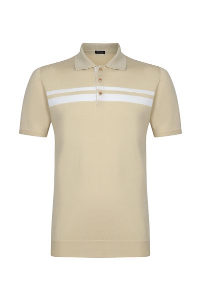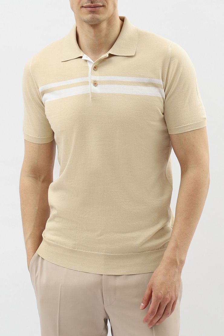 Джемпер-поло с горизонтальной полоской прекрасно подойдет для повседневного изысканного образа. Модель свободного кроя с отложным воротником на пуговицах.