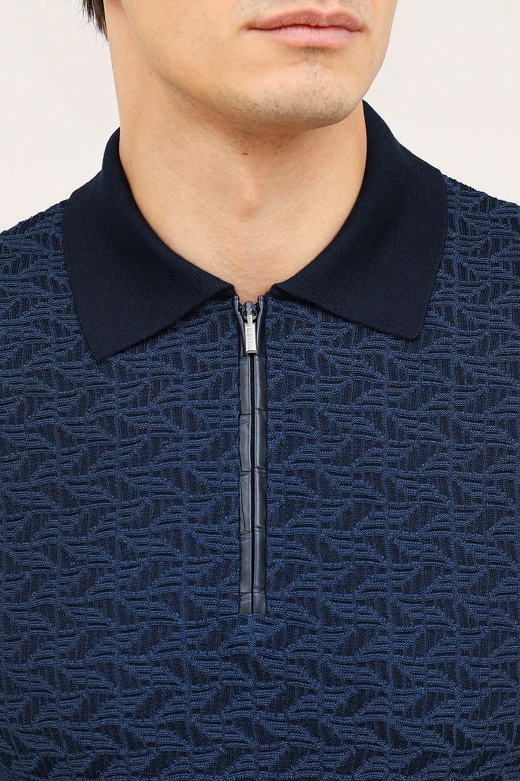 Джемпер с передней частью фактурной вязки и отделкой из кожи аллигатора. Модель свободного кроя имеет отложной воротник на молнии.