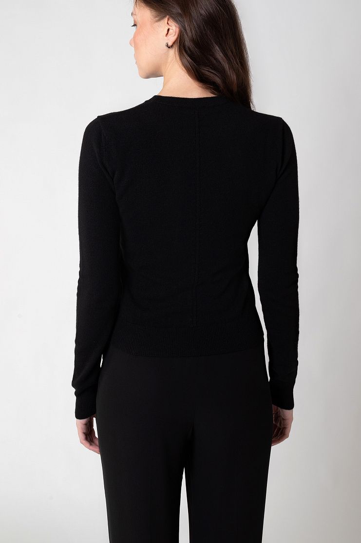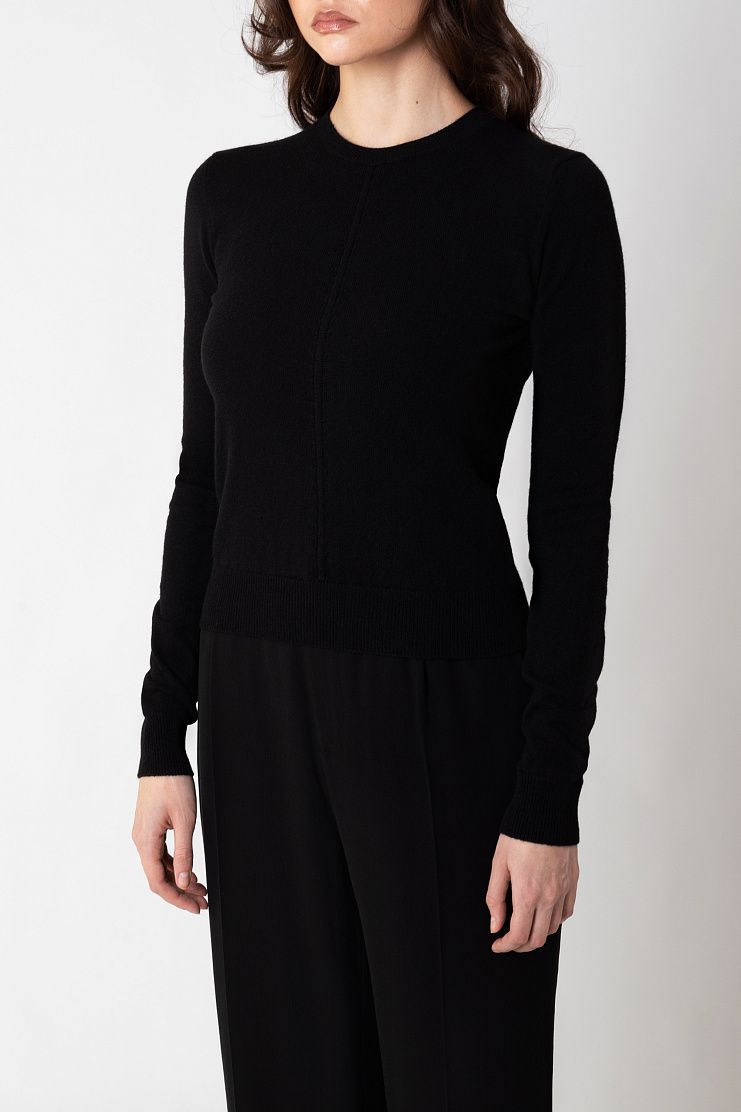 Джемпер тонкой вязки выполнен из мягкого невесомого кашемира, поэтому почти не ощущается на теле. Лаконичная модель дополнена круглым вырезом, длинными рукавами и отделкой в рубчик. Такой джемпер станет удачным приобретением для базового гардероба.