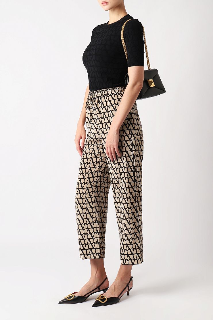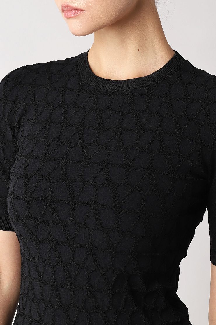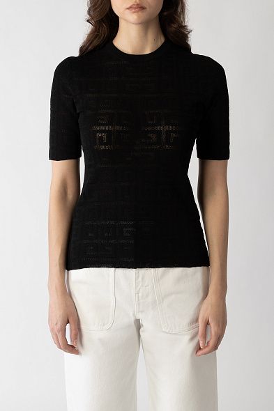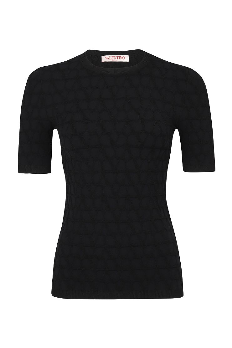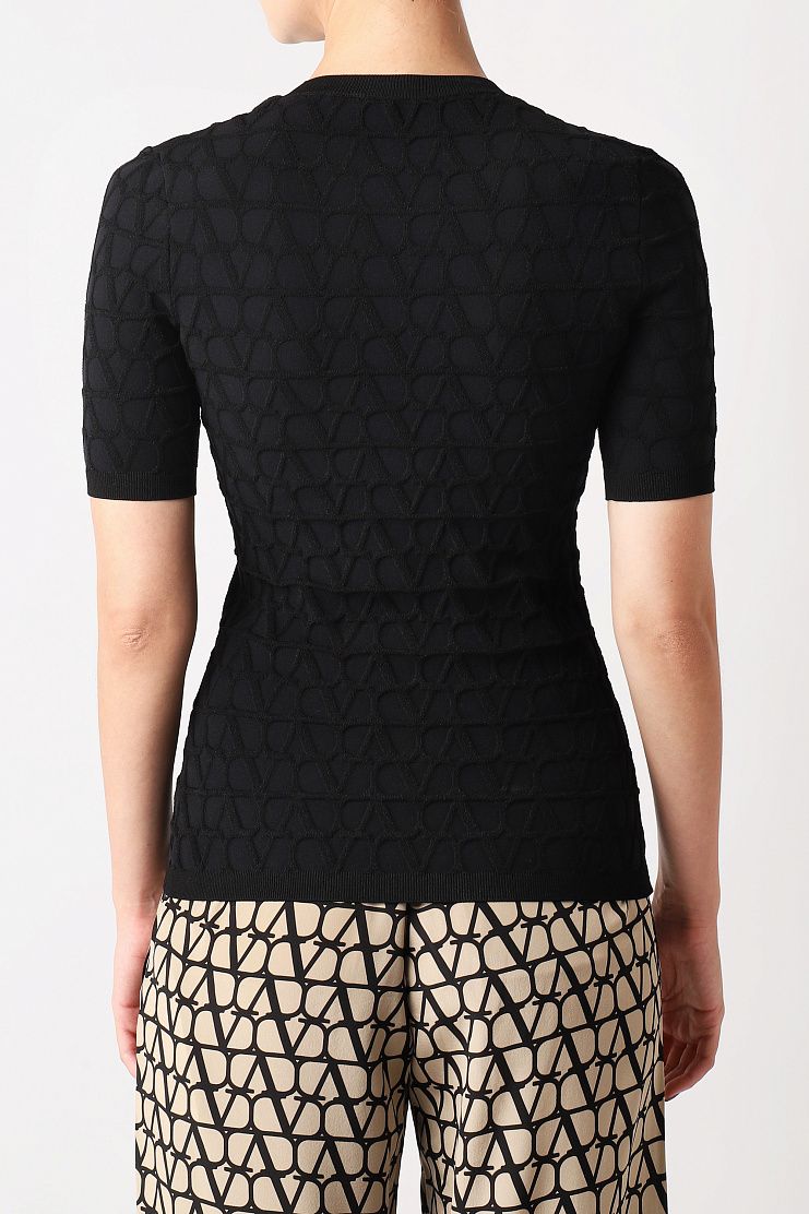 Облегающий джемпер с короткими рукавами выполнили из трикотажа с жаккардовым узором Toile Iconographe. Лаконичная модель органично дополнит самые разные повседневные образы.