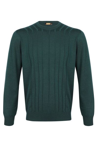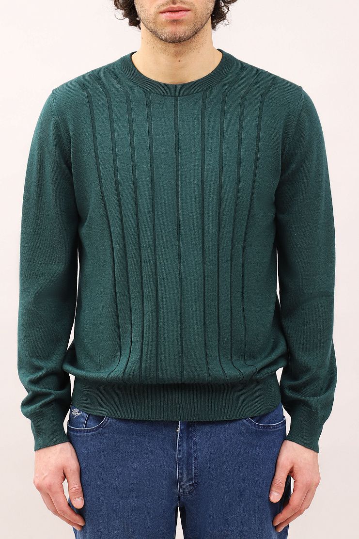 Джемпер с вертикальными жаккардовыми полосками отлично подойдет для комфортного повседневного образа. Модель свободного кроя имеет круглый вырез.
