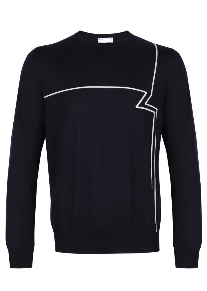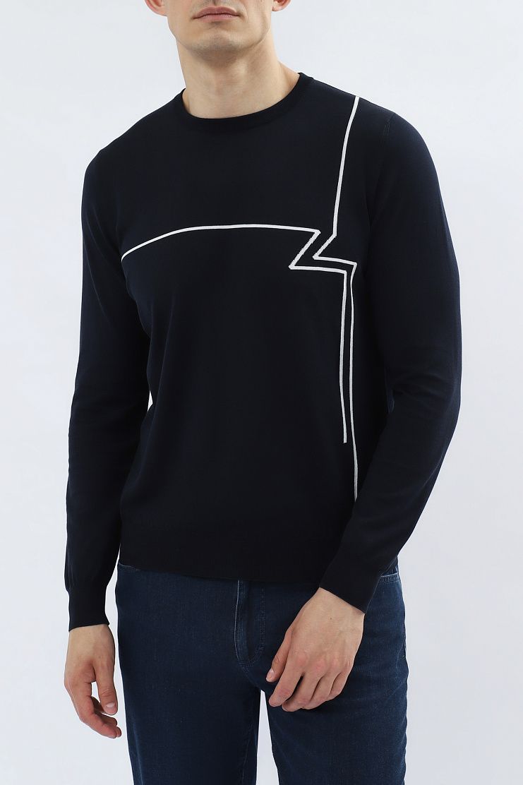 Джемпер с жаккардовым рисунком в виде зашифрованной буквы Z. Модель свободного кроя с круглым воротником, манжетами и нижним краем из трикотажа в рубчик.
