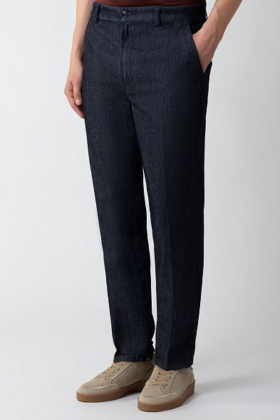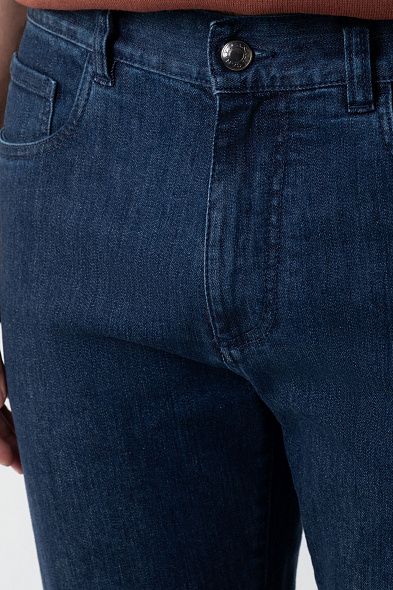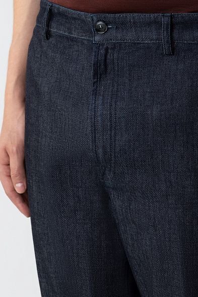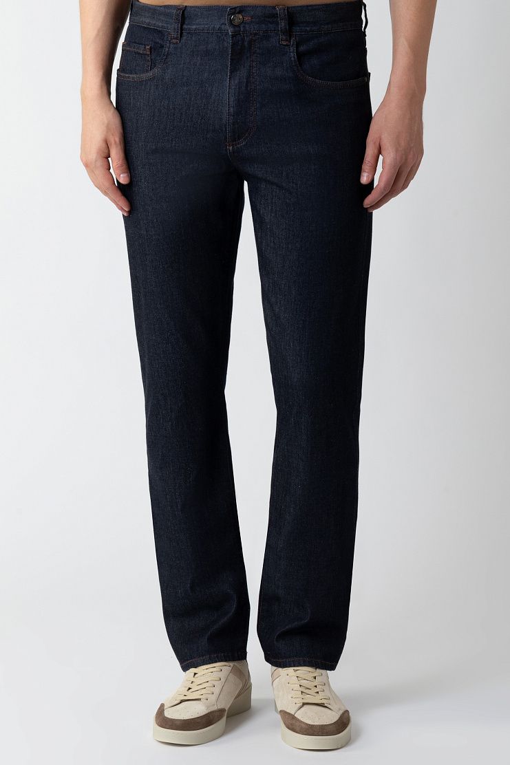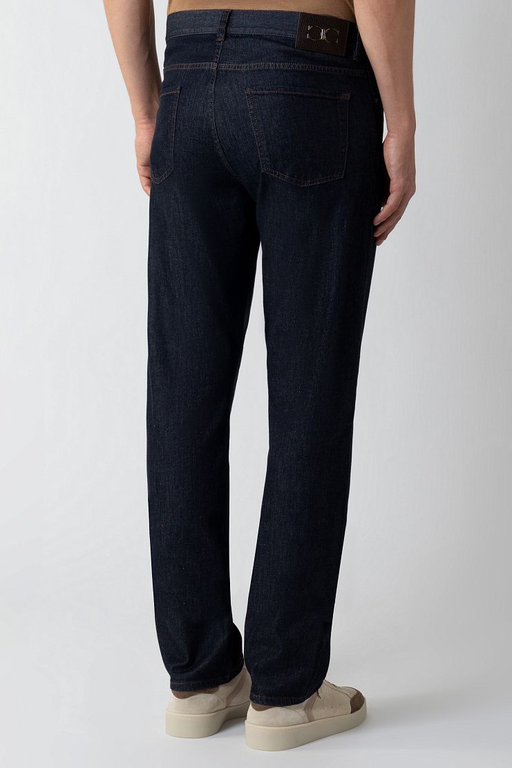 Джинсы прямого кроя со стандартной посадкой сшили из эластичной ткани на основе лиоцелла, хлопка и модала. Модель дополнена карманами, кожаным патчем с логотипом на поясе и застежкой на молнию и пуговицу. Базовый вариант для непринужденных образов на каждый день.