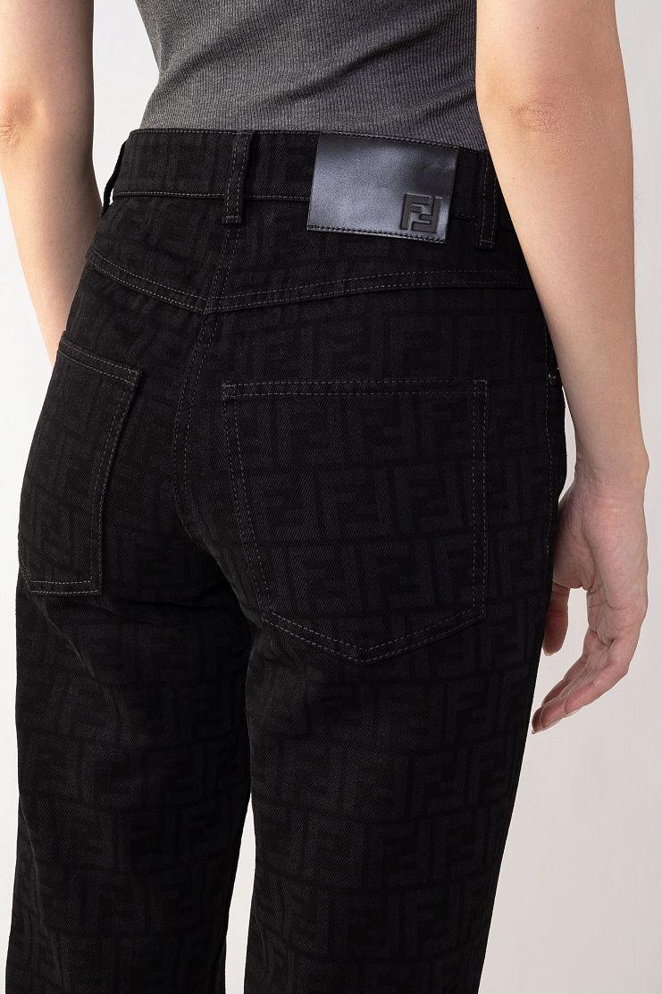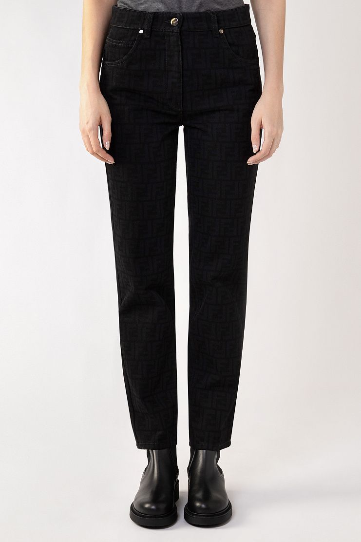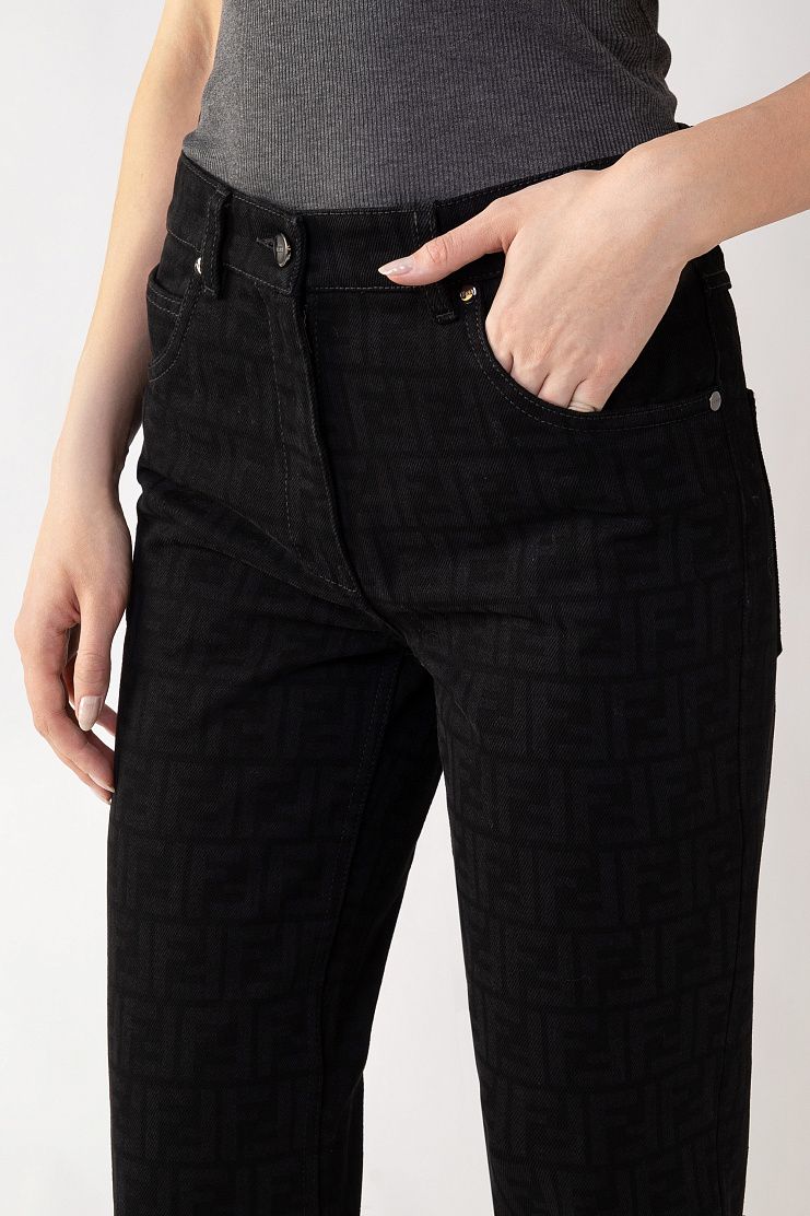 Прямые джинсы выполнены из плотного денима с фирменным узором FF. Модель с поясом и шлевками для ремня дополнена пятью карманами и застегивается на молнию. Такие универсальные джинсы легко впишутся в образ любой сложности.