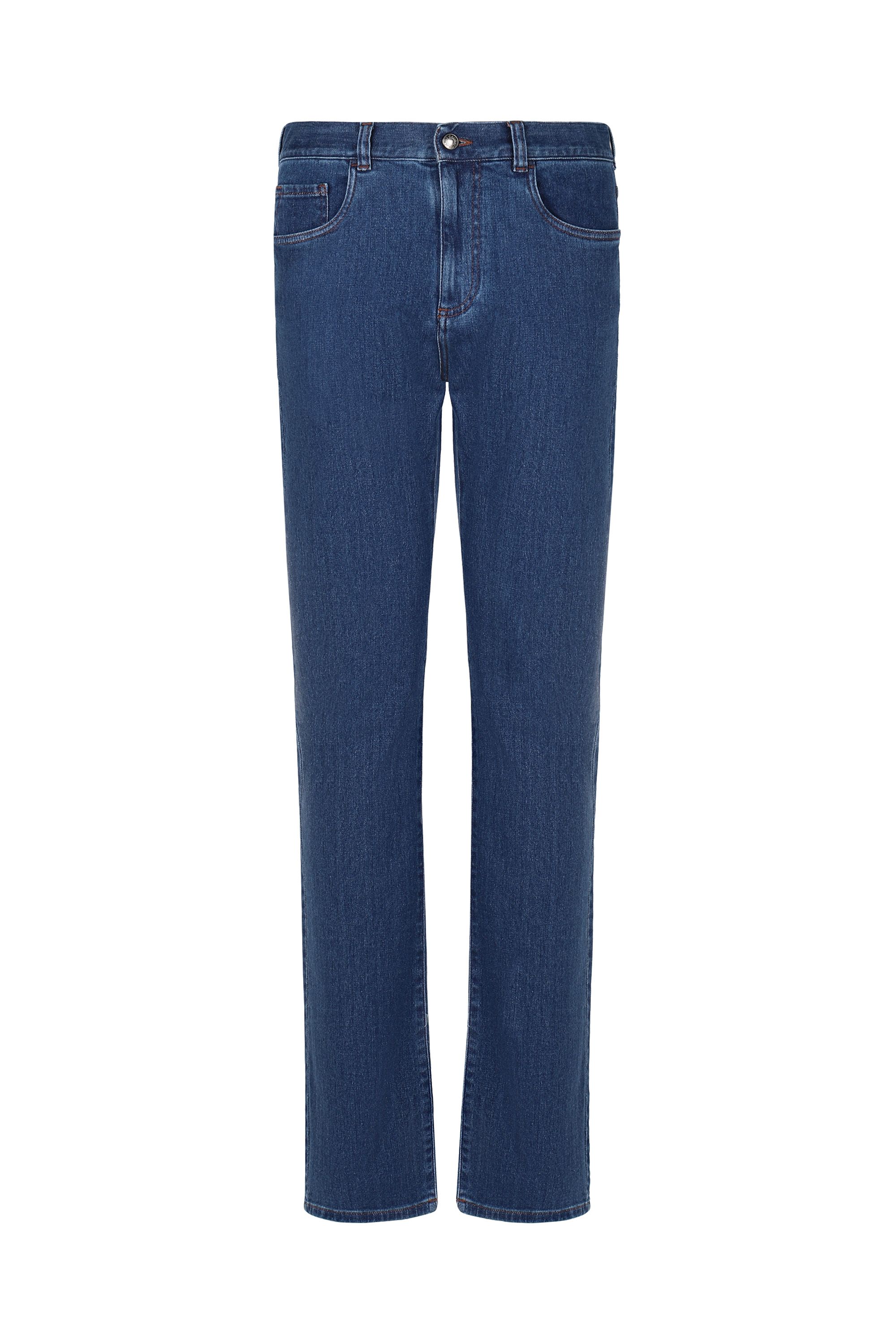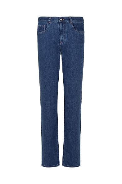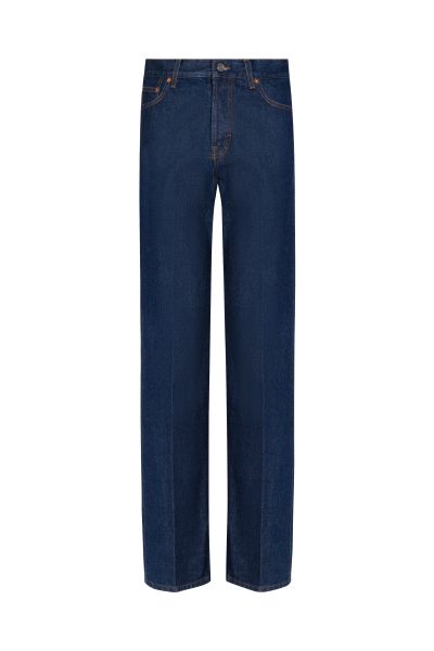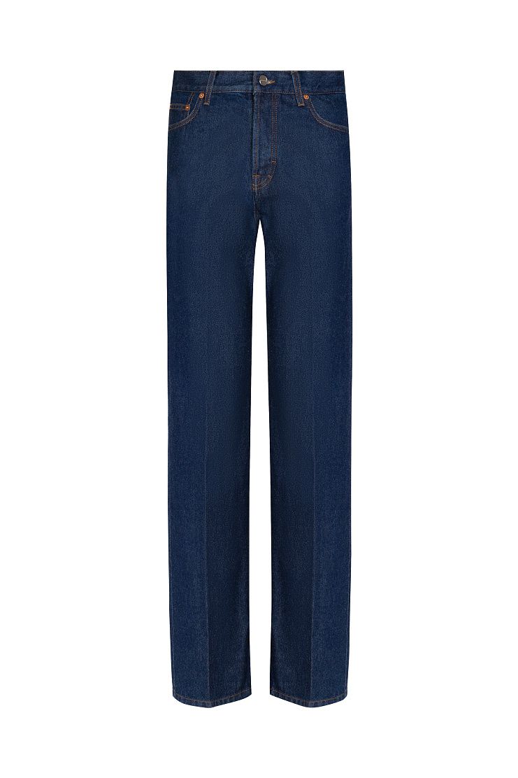 Прямые джинсы со стрелками сшили из плотного денима. Модель с пятью карманами дополнили фирменным патчем на поясе и небольшими разрезами на краях брючин. Джинсы застегиваются на молнию и пуговицу. Базовый вариант для непринужденных образов на каждый день.