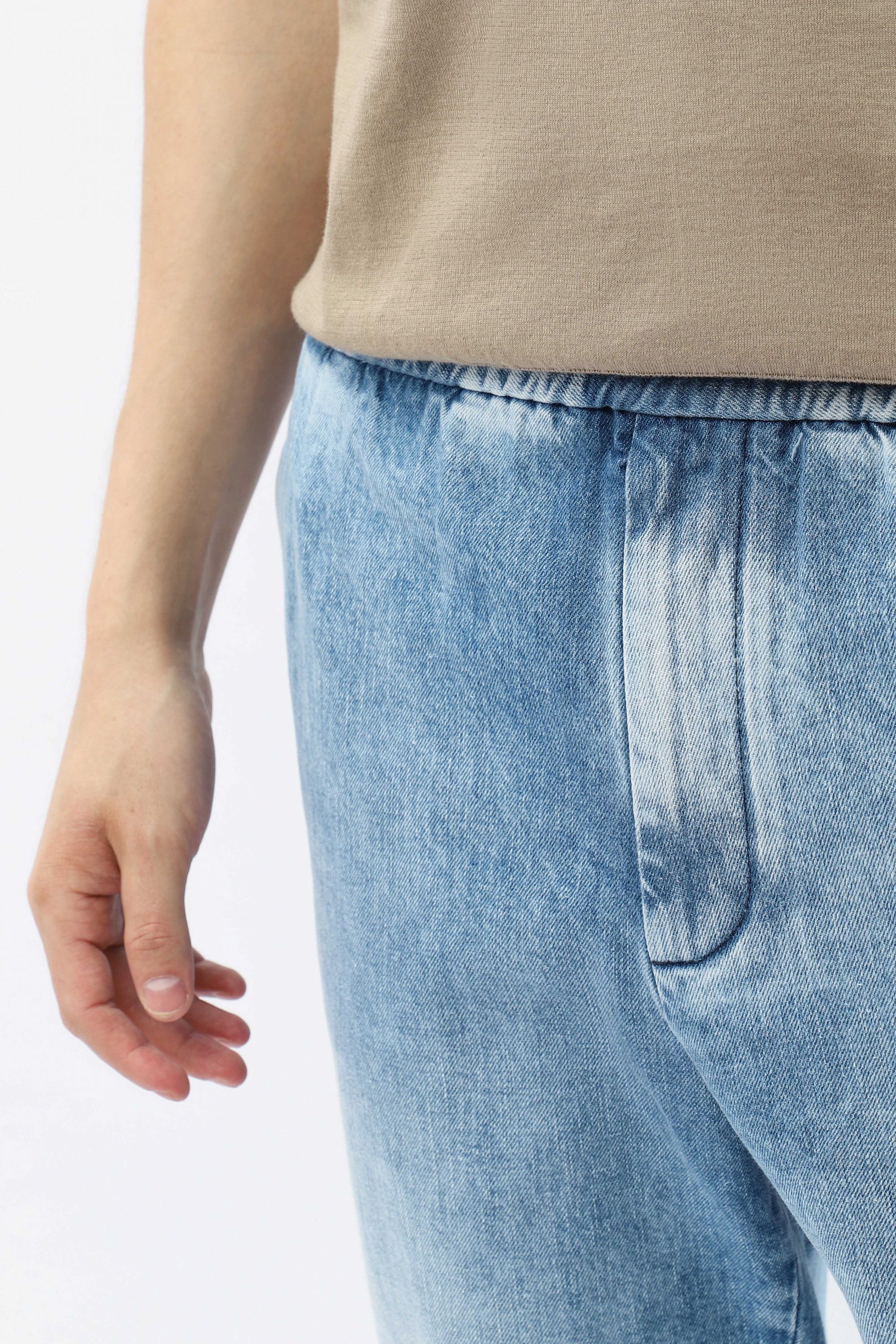 Джинсы-бананы завоевали свою популярность еще в 80-х годах благодаря своему комфортному крою и стильному внешнему виду. Модель имеет объемную верхнюю часть с защипами, штанины, плавно сужающиеся к низу, и застежку на молнию и пуговицу с логотипом KNT.