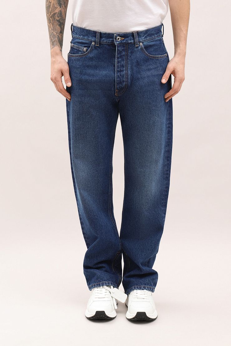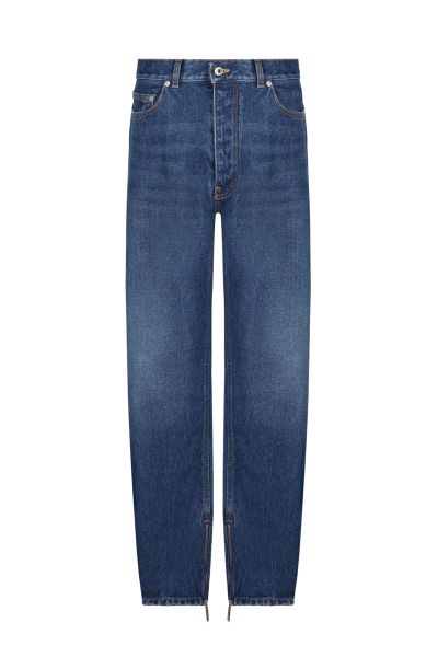 Прямые джинсы выполнены из прочного натурального хлопка. Дополнены молниями по краю брючин, создающими стильный акцент. Благодаря стандартной посадке эти джинсы отлично подходят для повседневных образов.