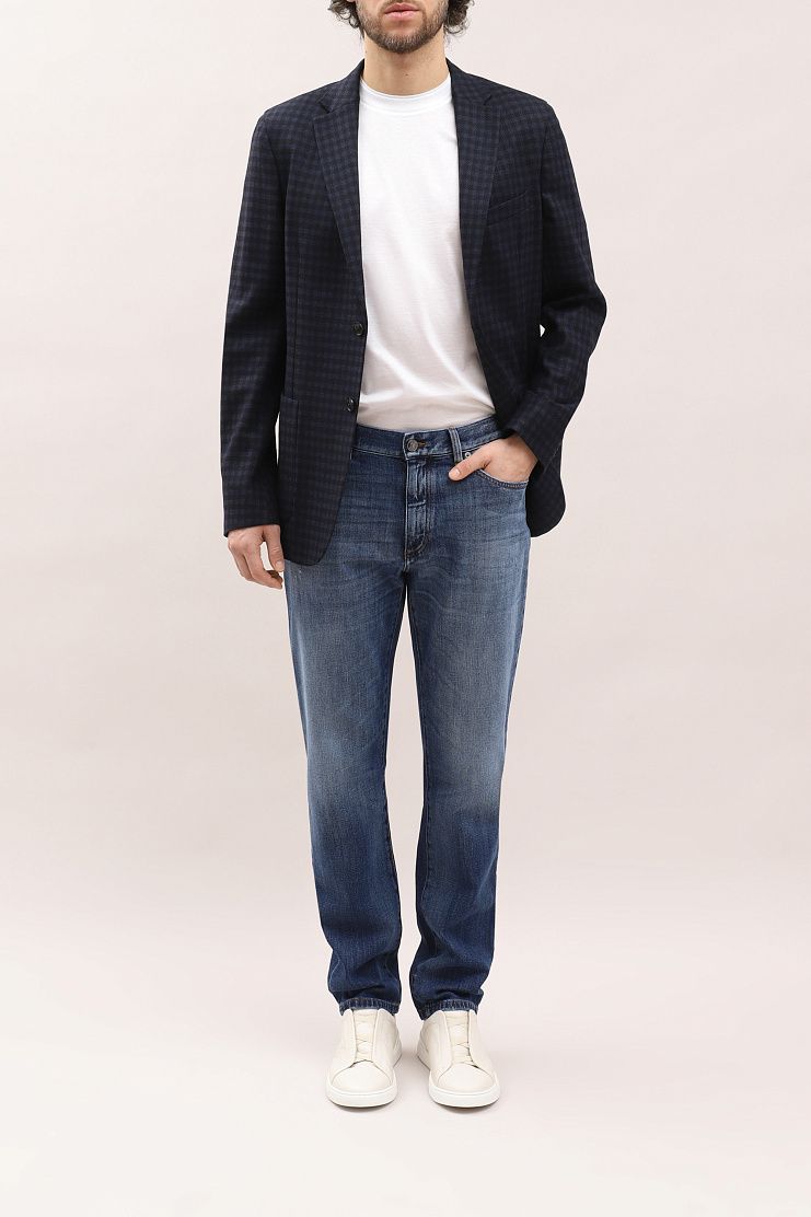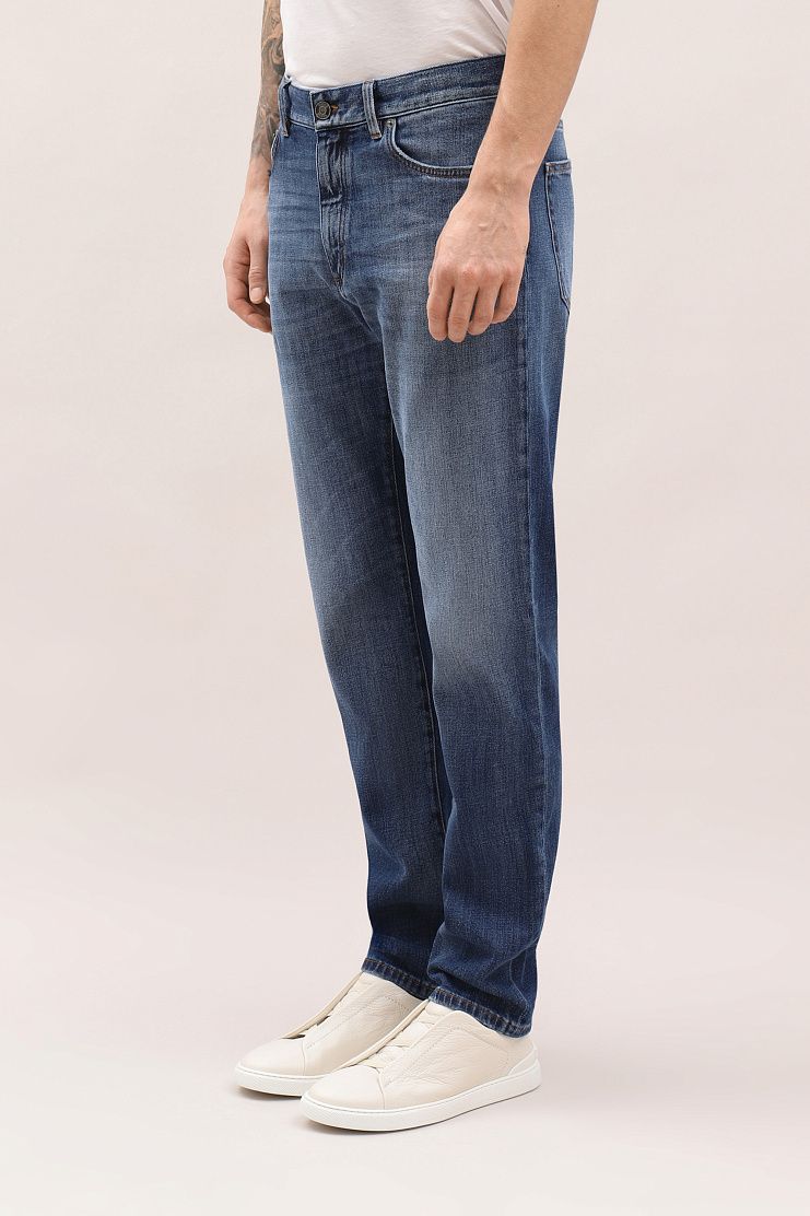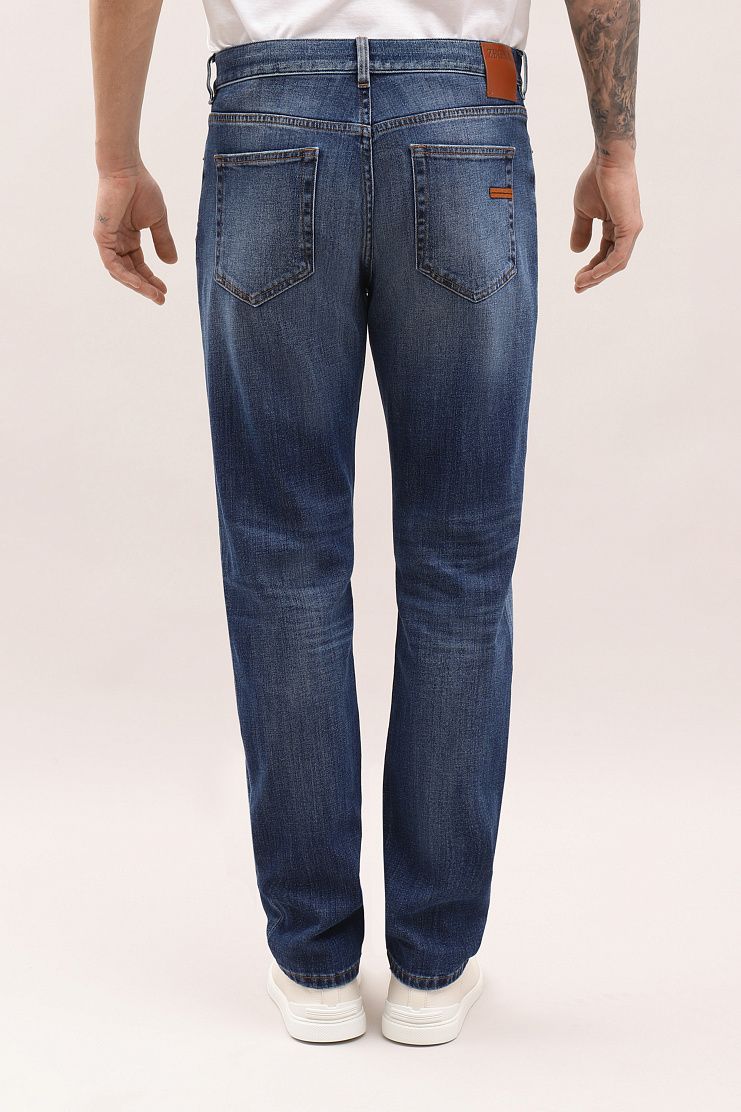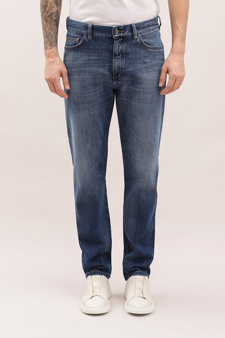 Джинсы с потертостями — бессмертная классика уличного стиля от Zegna. Модель, слегка зауженная к низу, имеет кожаную нашивку на поясе и застежку на молнию и металлическую пуговицу.