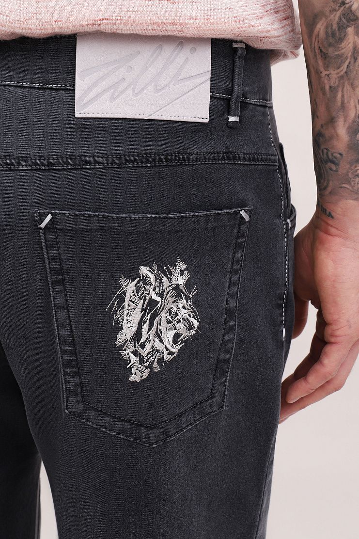 Джинсы с вышивкой в виде головы рычащего льва на заднем кармане идеально подойдут для стильного городского образа. Модель прямого кроя имеет боковые и задние карманы и застежку на молнию и фирменную металлическую пуговицу.