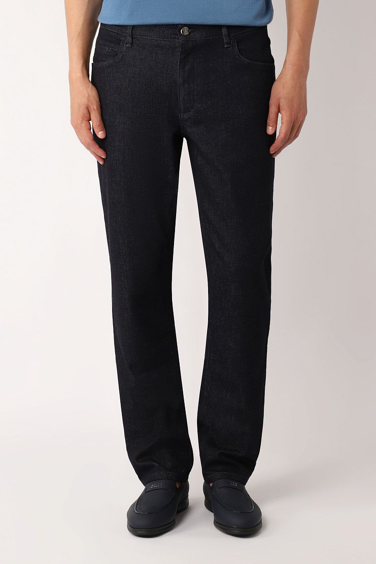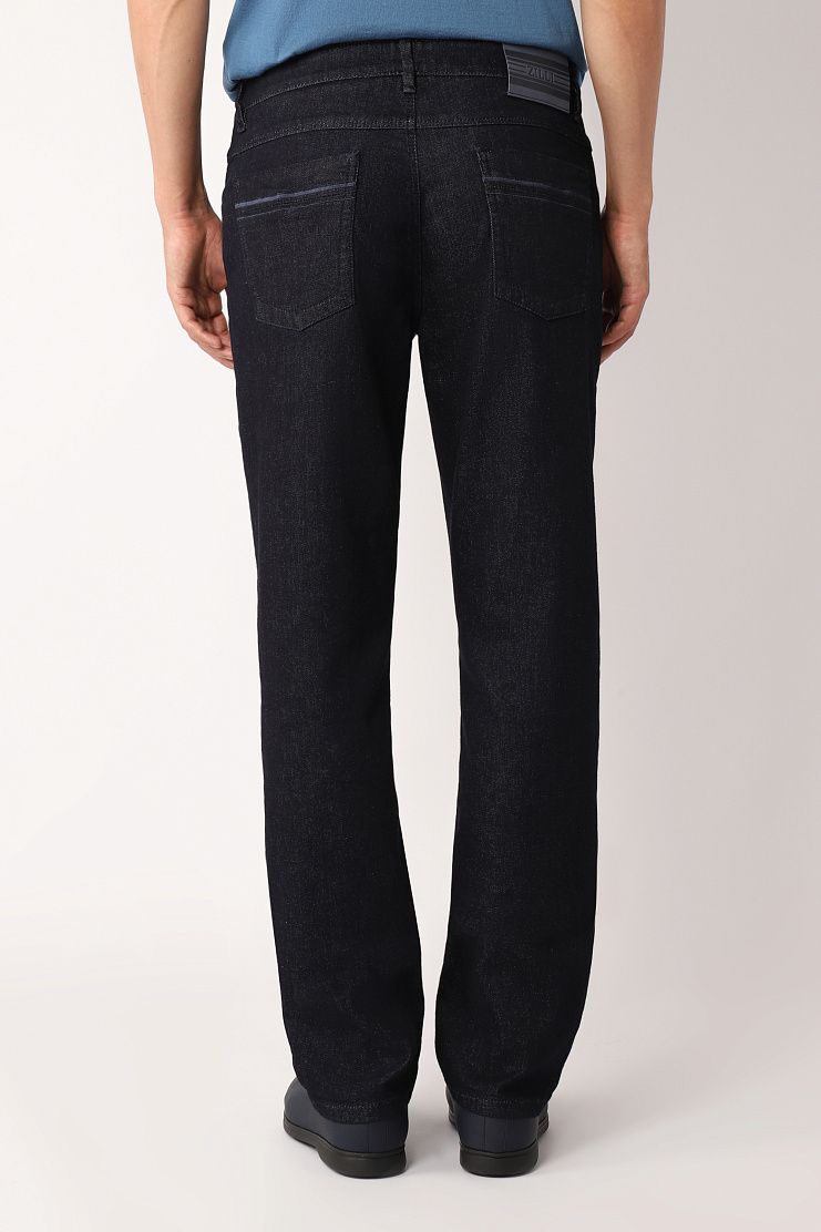 Джинсы кроя Regular fit выполнили из чуть эластичного денима на основе хлопка и кашемира. Модель с пятью карманами дополнена брендированным жакроном на поясе сзади.